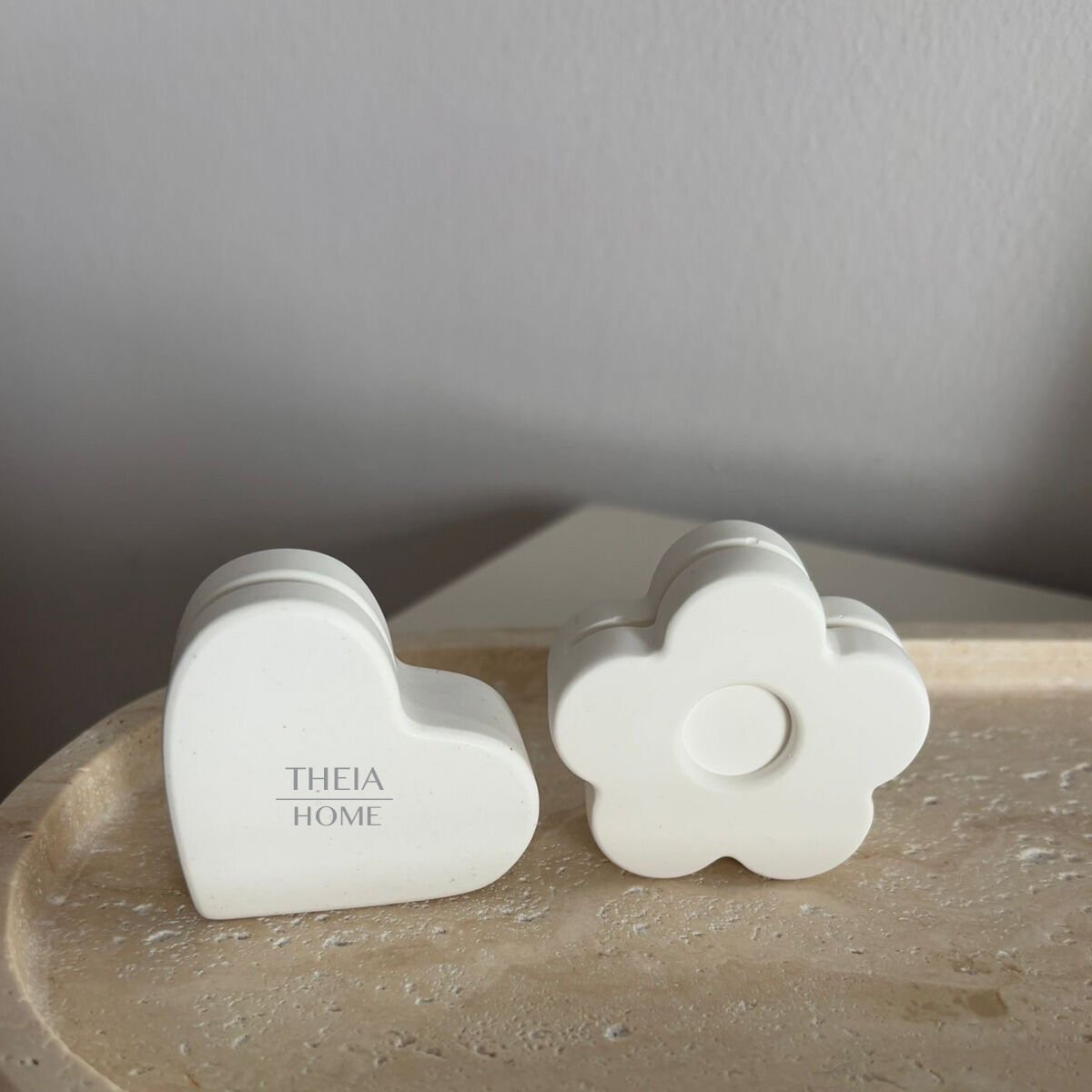 THEIA HOME 2’li Kalp & Çiçek Kartlık Set; Modern Beton Tasarım ile Zarif Düzenleyici