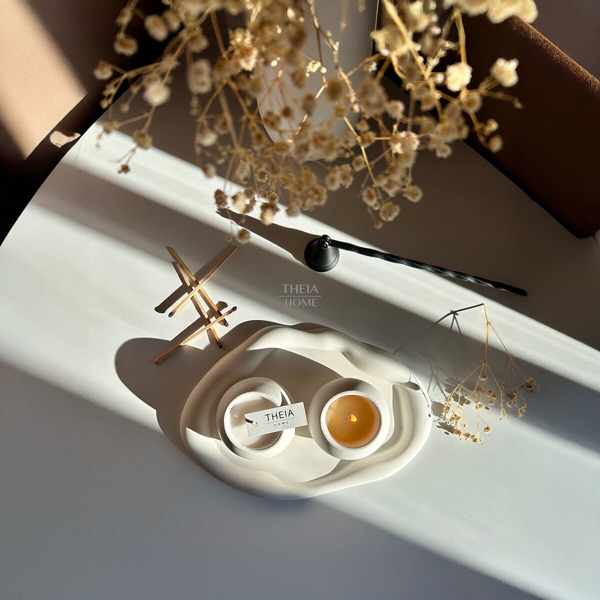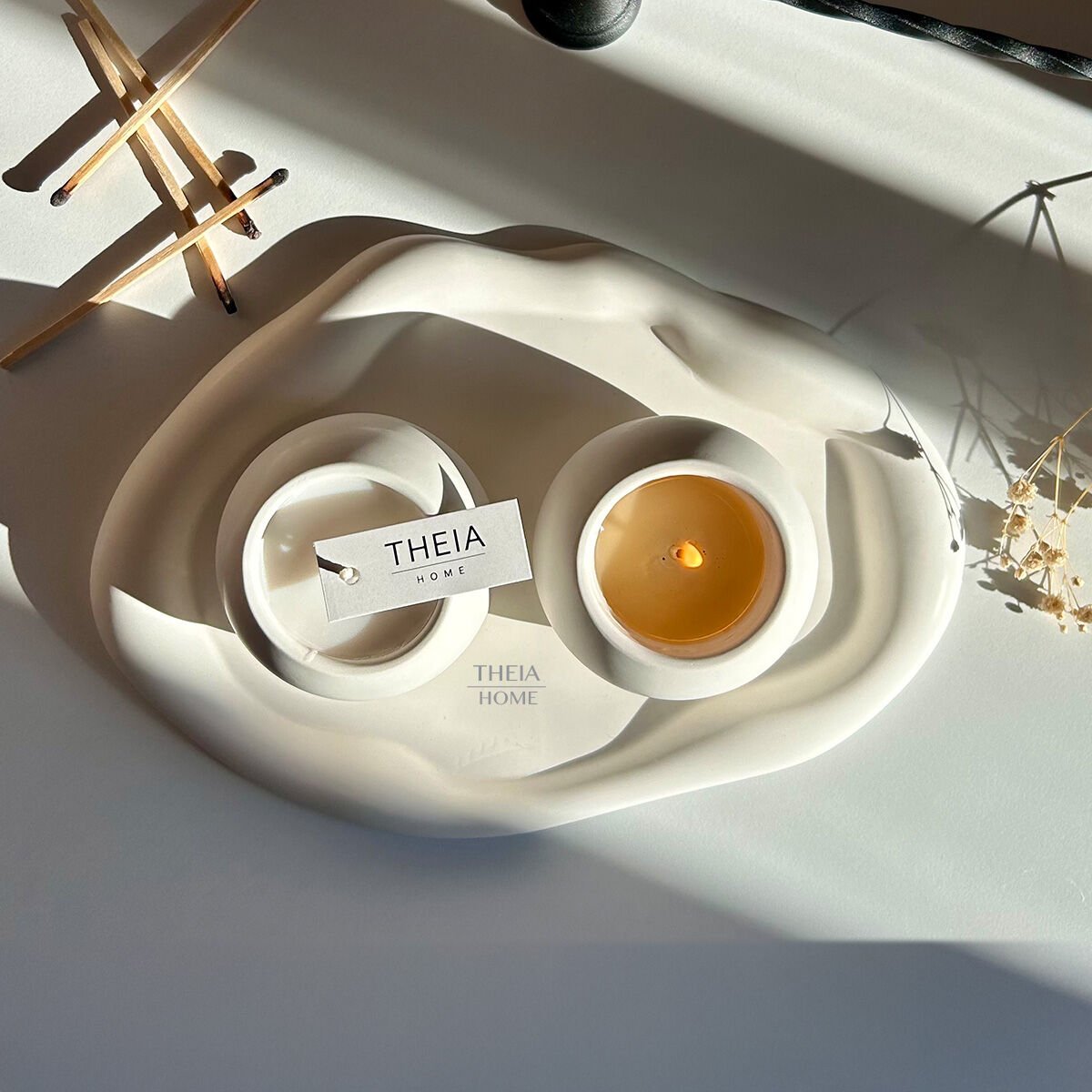 THEIA HOME 3’lü Bulut Dekoratif Tabak ve Mum Seti, evinize huzur dolu bir atmosfer katarken, sevdiklerinize de anlamlı ve şık bir hediye alternatifi sunar.