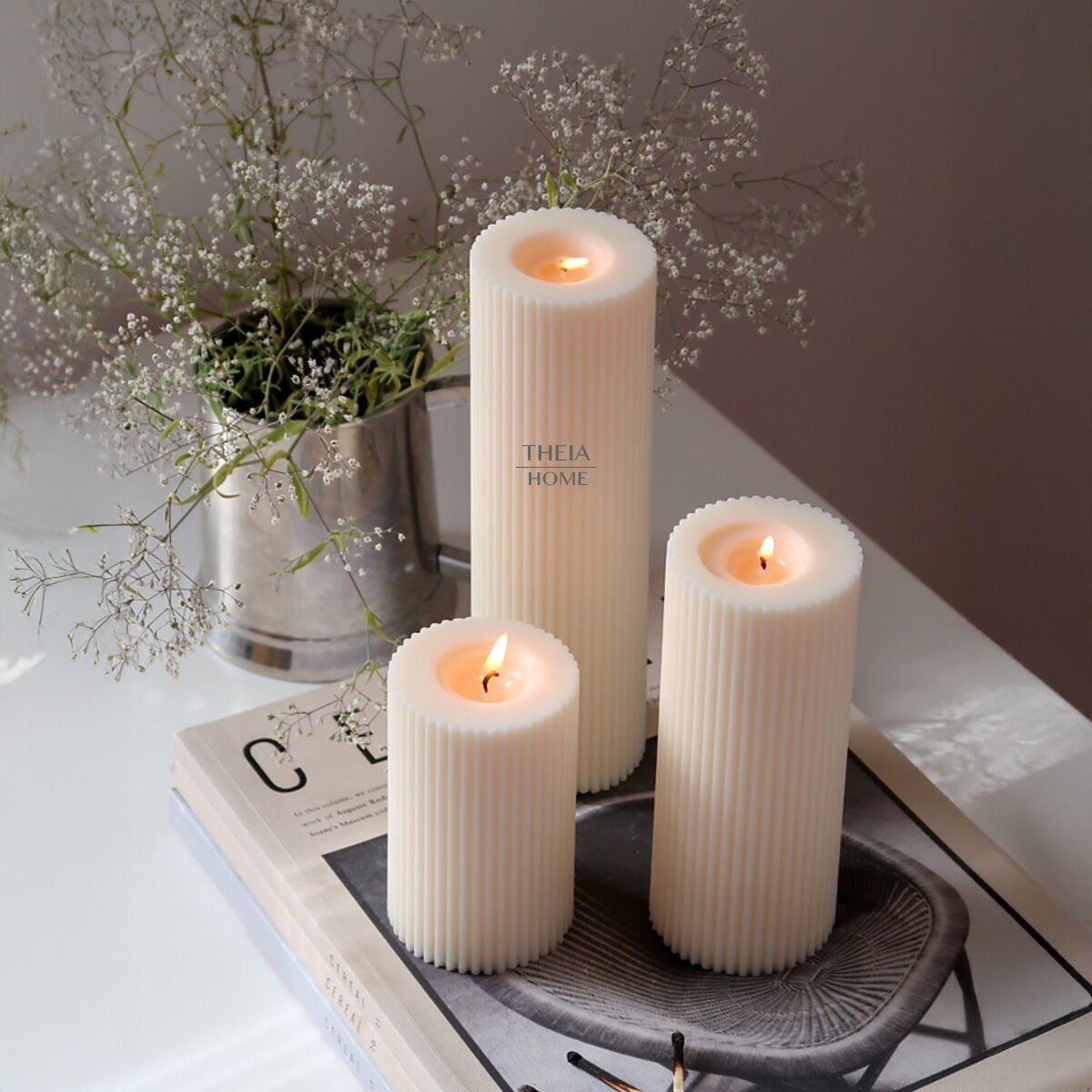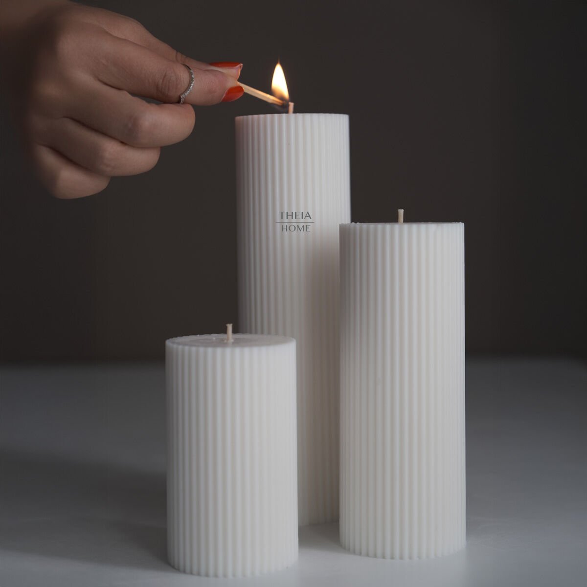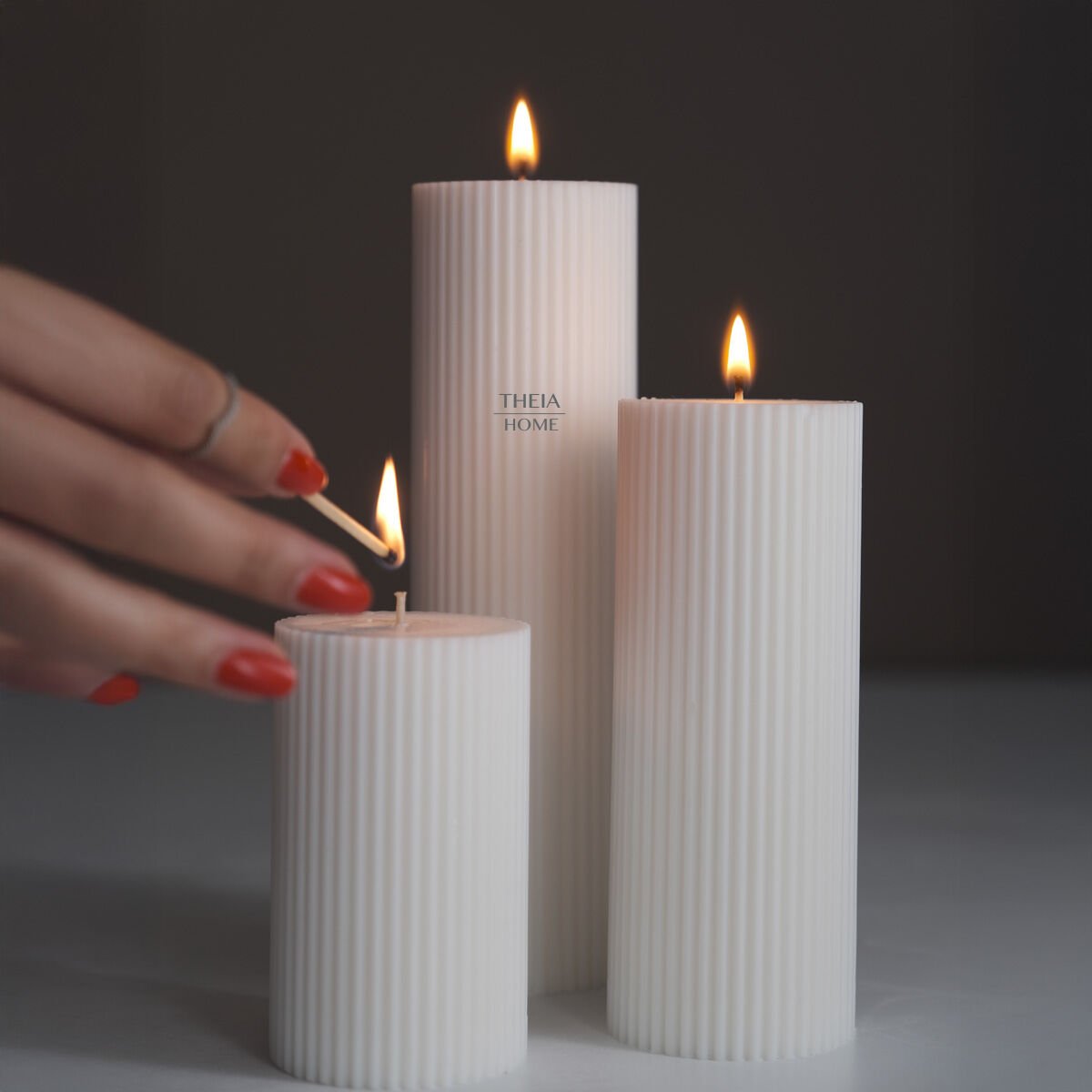 THEIA HOME’un bu sütun mum seti, evinize doğal, estetik ve sıcak bir atmosfer katarken sevdiklerinize anlamlı bir hediye seçeneği sunar. Uzun yanma süreleriyle mekanınızda daha uzun kalıcı bir etki bırakır.