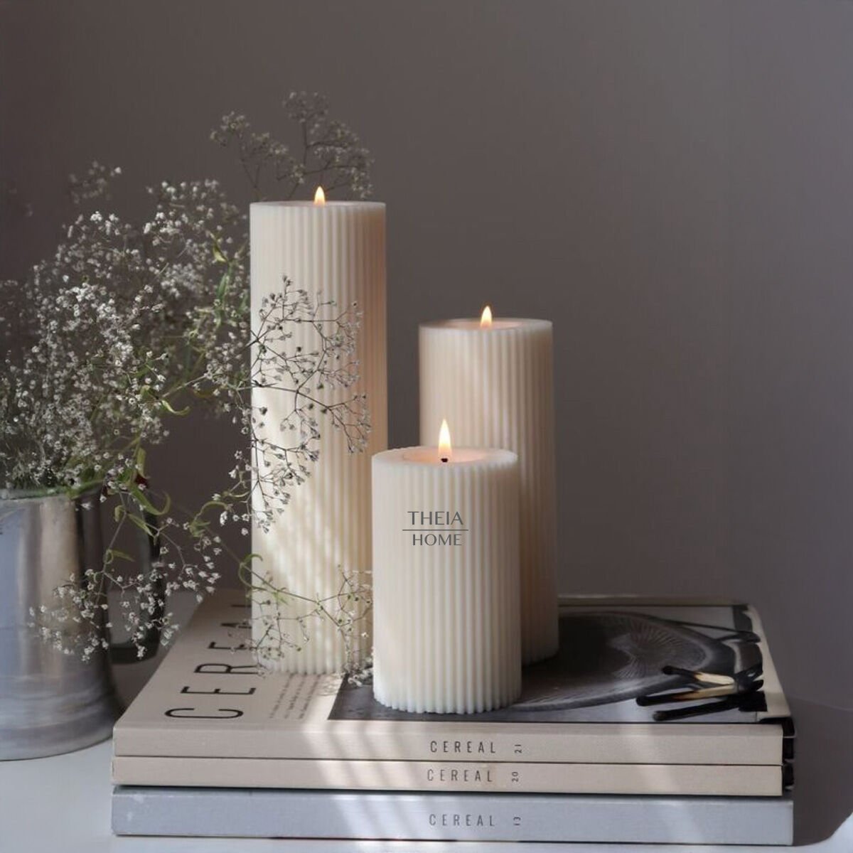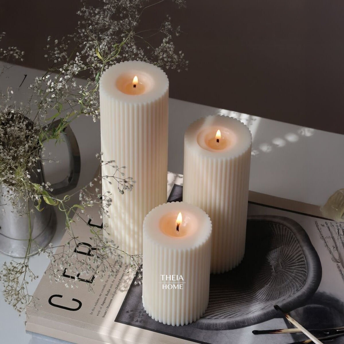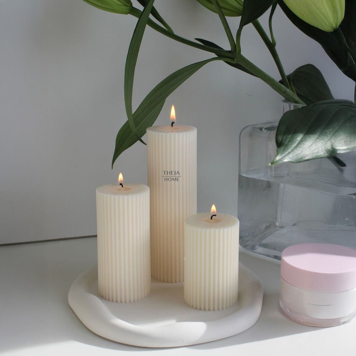 THEIA HOME’un bu sütun mum seti, evinize doğal, estetik ve sıcak bir atmosfer katarken sevdiklerinize anlamlı bir hediye seçeneği sunar. Uzun yanma süreleriyle mekanınızda daha uzun kalıcı bir etki bırakır.