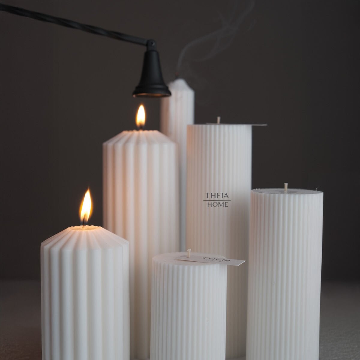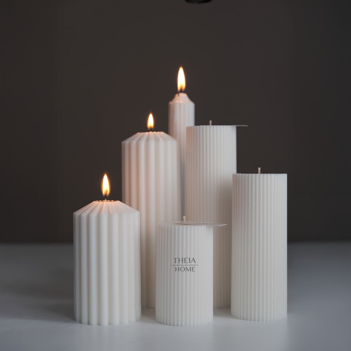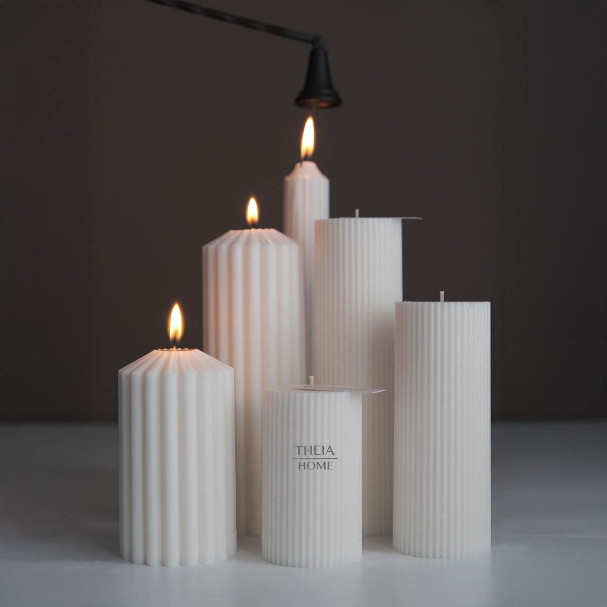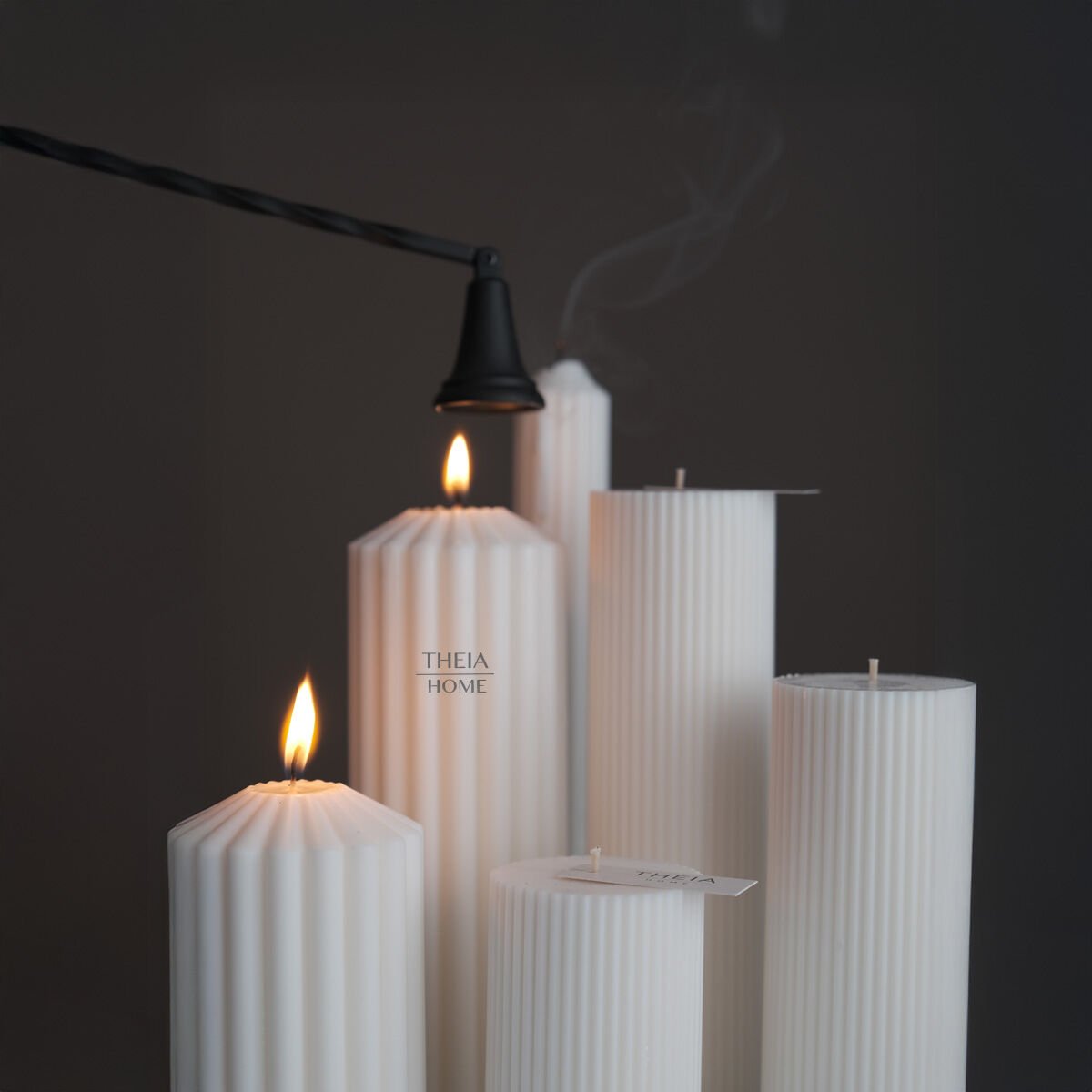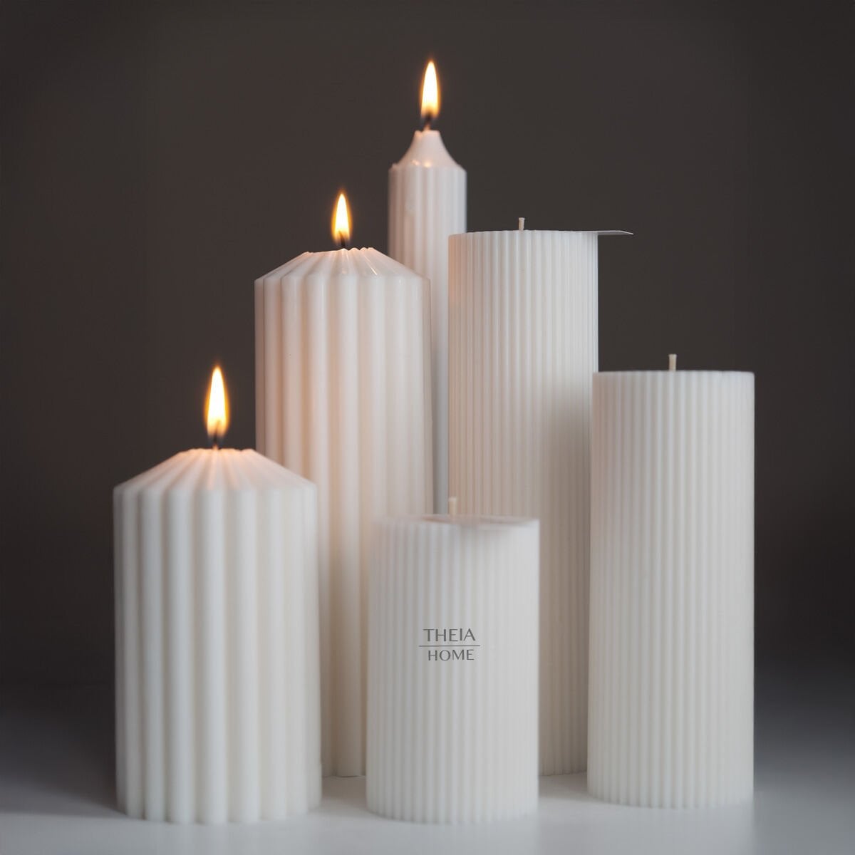 Modern hatları ve zamansız beyaz tonu ile hazırlanan Sütun ve Blok Model 6’lı Soya Mum Set, Theia Home’un sade ama güçlü duruşunu yansıtan özel bir koleksiyondur. Farklı yüksekliklerdeki 6 parça mumdan oluşan bu set; minimal çizgiler, dikey oluk detayları ve zarif silüetlerle yaşam alanlarına estetik bir ritim kazandırır.