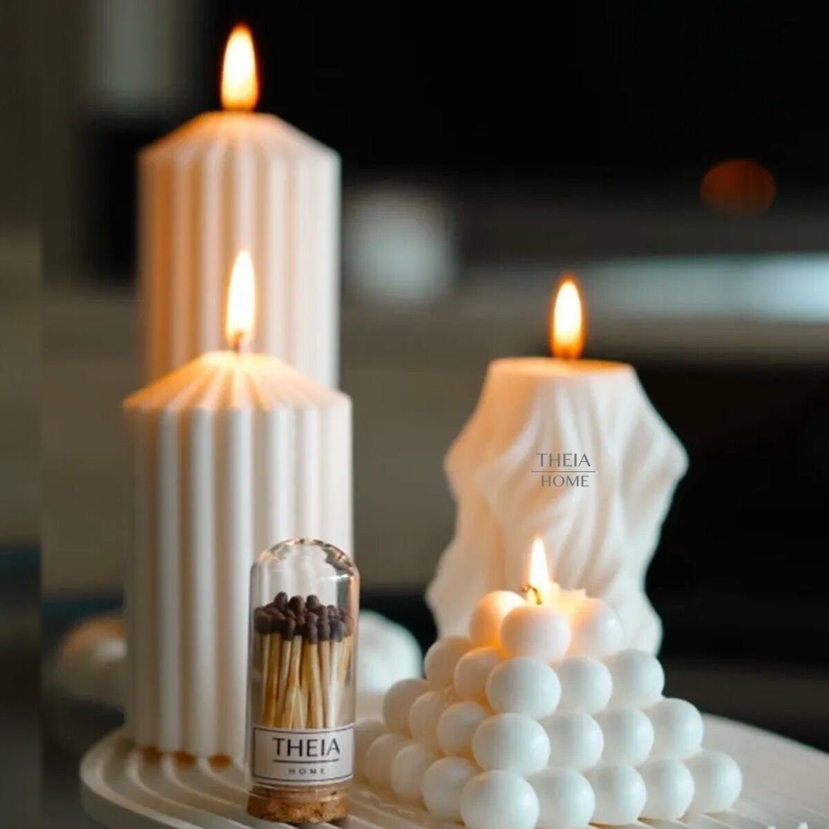 THEIA HOME 7’li Set Soya Mum Dekoratif Tabak ve Kibrit, minimalist estetiği, duyusal zenginliği ve fonksiyonel bütünlüğüyle hem kendinizi hem sevdiklerinizi mutlu edecek özel bir hediye alternatifi sunar.