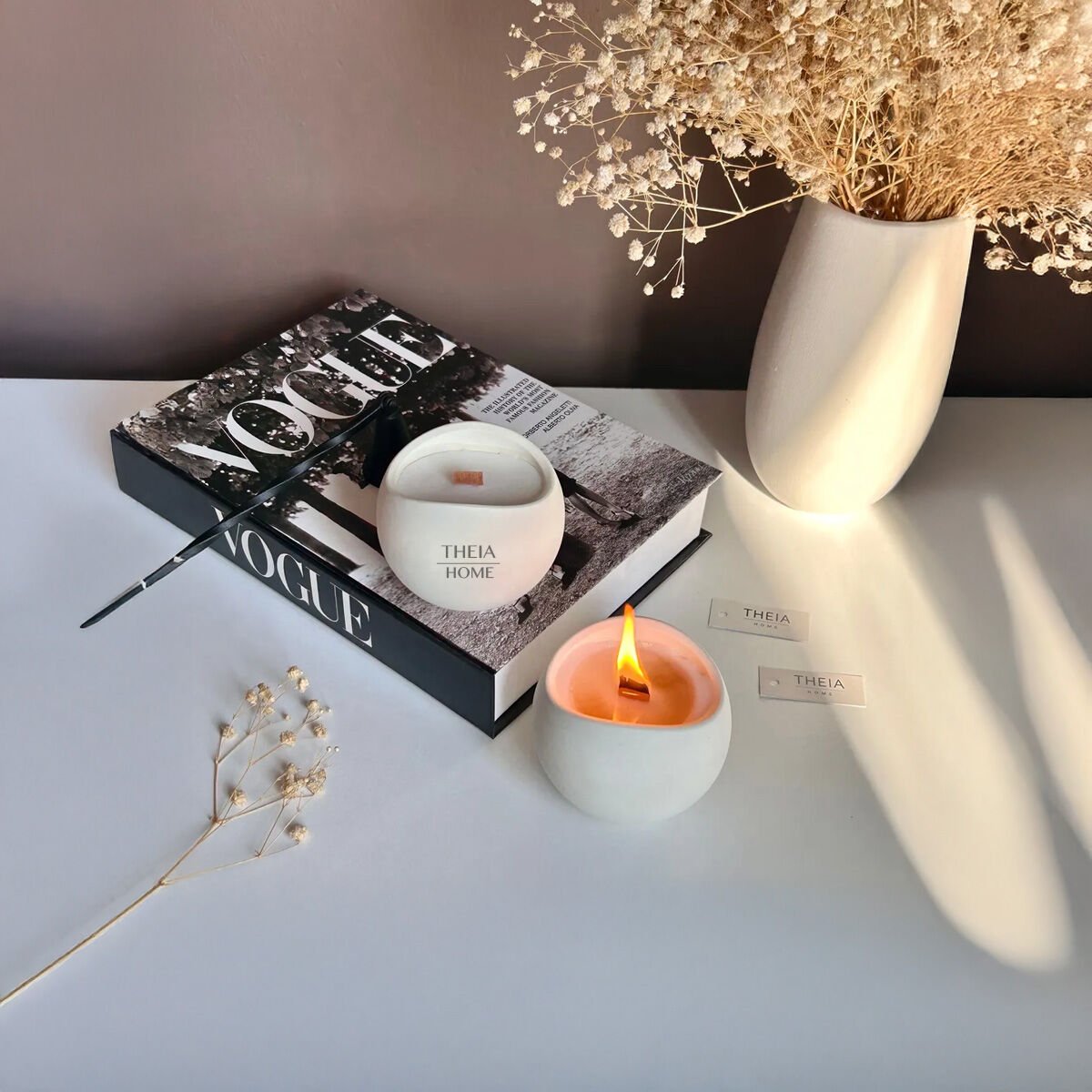 Modern ve doğal bir dokunuş katan THEIA HOME 2’li Ahşap Fitilli Dekoratif Soya Mum Seti, yaşam alanlarınıza hem estetik hem işlevsel bir şıklık getiriyor. El yapımı soya wax mumlar, sade beyaz renkleri ve ahşap fitilleriyle dekoratif obje işlevi görürken, yatak odası, oturma alanı veya hediye sunumu için ideal bir atmosfer oluşturur.