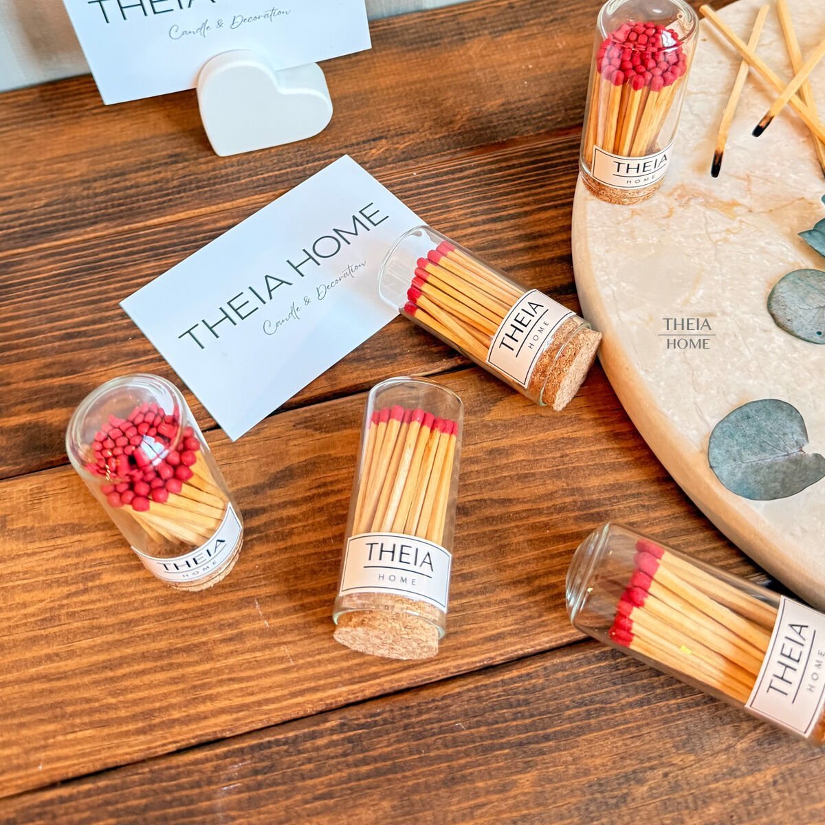 Mum yakma ritüellerinizi görsel açıdan tamamlayan bu ürün, Theia Home mumlarıyla birlikte kullanıldığında stil sahibi sunumlar oluşturur. Sehpa üstü, tepsi içi veya hediye kutularında şıklığı destekleyen bir yardımcı olarak öne çıkar. İçindeki kırmızı uçlu kibritler hem kontrast hem de sıcaklık hissi yaratarak ortama güçlü bir karakter katar.