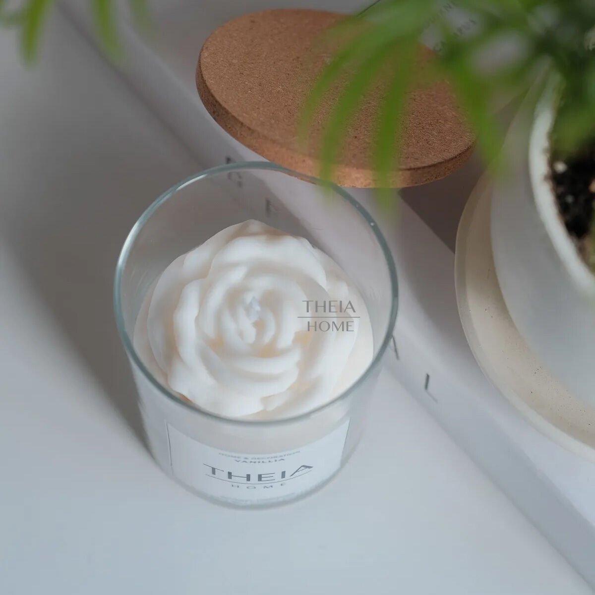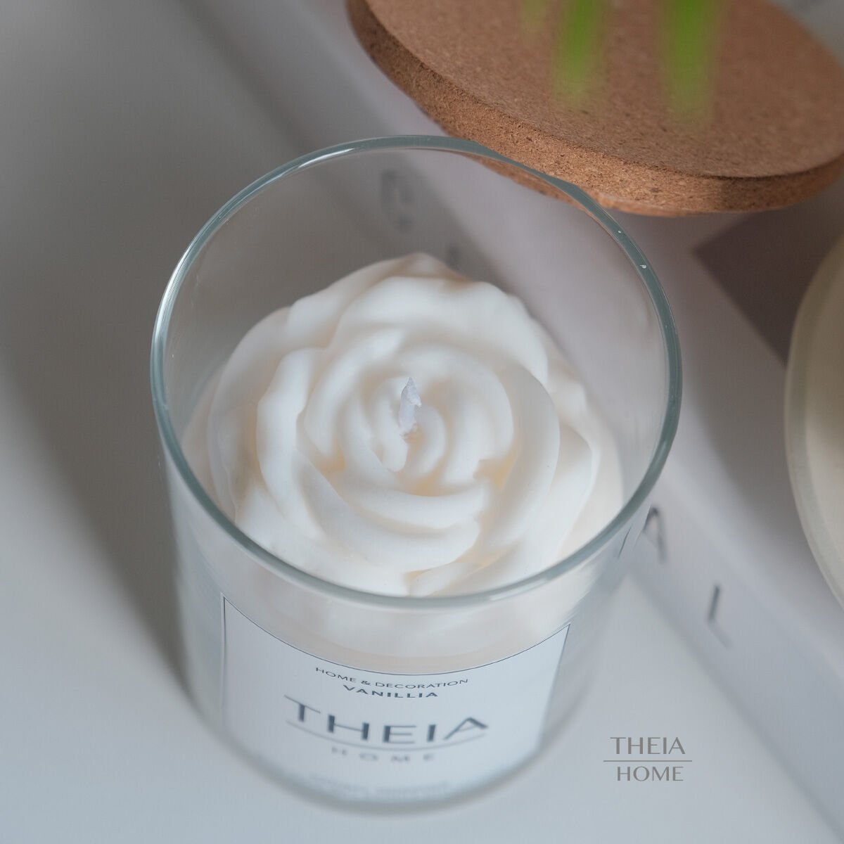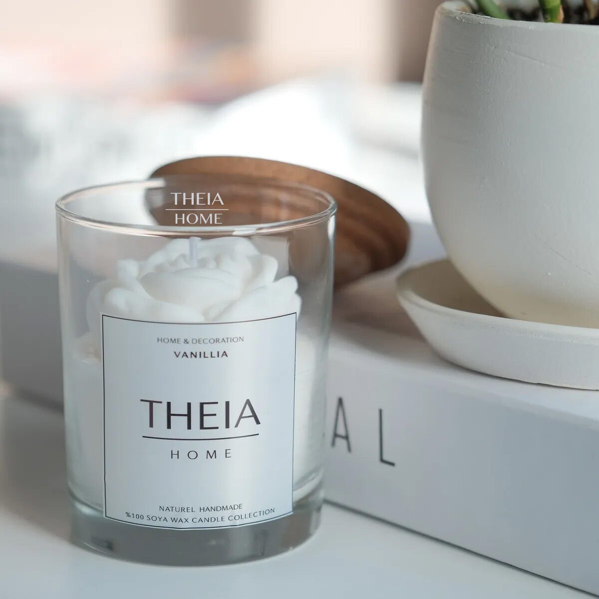 THEIA HOME Vanilya Kokulu Cam Kavanoz Mum, minimalist tasarımı, doğal malzemeleri ve çok yönlü kullanımıyla evinize hem görsel hem de duyusal bir değer katıyor ayrıca hediye olarak da zarif bir seçenek sunuyor.