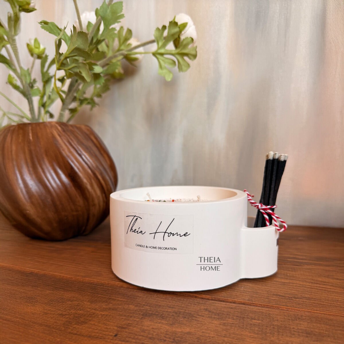 THEIA HOME Dekoratif Simli Soya Mum & Uzun Kibrit Seti, estetik simli yüzeyi, huzurlu vanilya kokusu ve tam set teslimiyle evinize eşsiz bir atmosfer getirir, aynı zamanda şık ve fonksiyonel bir hediye alternatifi sunar.