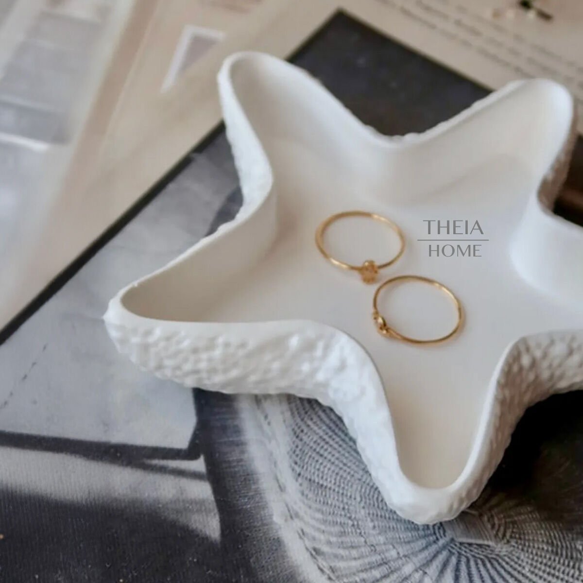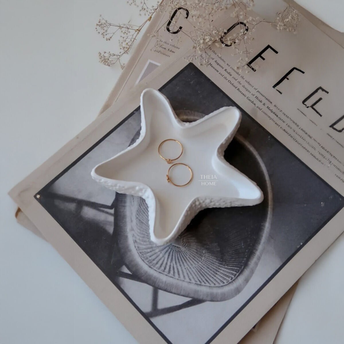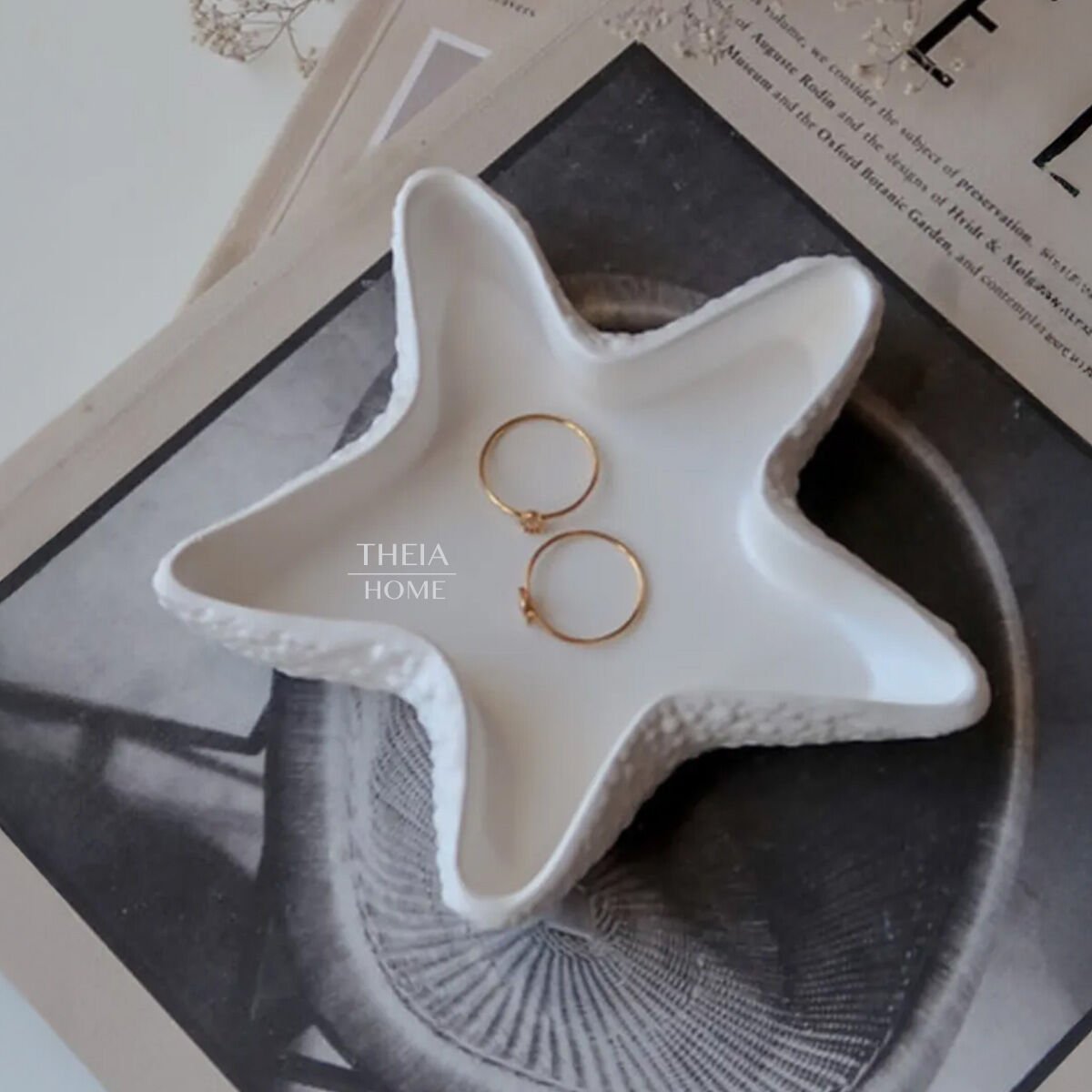 Modern ve doğal bir deniz esintisi taşıyan THEIA HOME Deniz Yıldızı Dekoratif Tabak, yaşam alanlarınıza hem şıklık hem de fonksiyonellik katıyor. Beton malzemesi ve zarif deniz yıldızı formu ile mum, takı veya küçük objeler için ideal bir sunum platformu oluşturuyor.