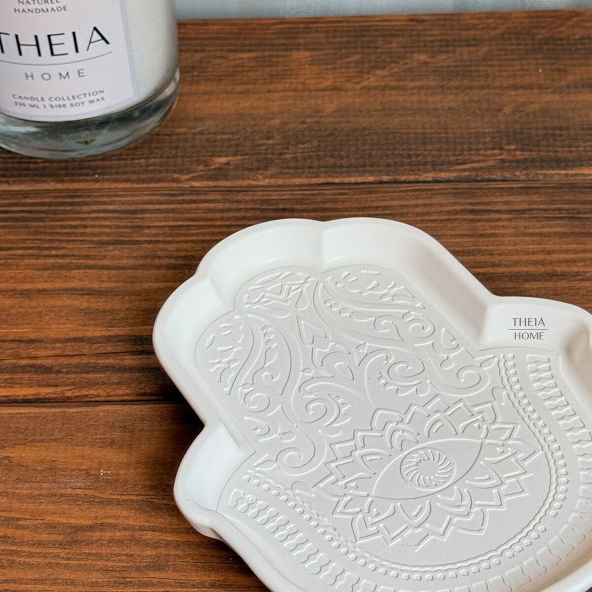 Koruyucu simgesiyle öne çıkan bu el figürlü dekoratif tabak, yaşam alanlarına hem zarif hem de spiritüel bir enerji kazandırır. Theia Home’un özel taş karışımlı malzemesiyle elde dökülerek üretilen bu ürün, pürüzsüz yüzeyi ve sade görünümüyle hem modern hem anlamlı bir detay sunar.