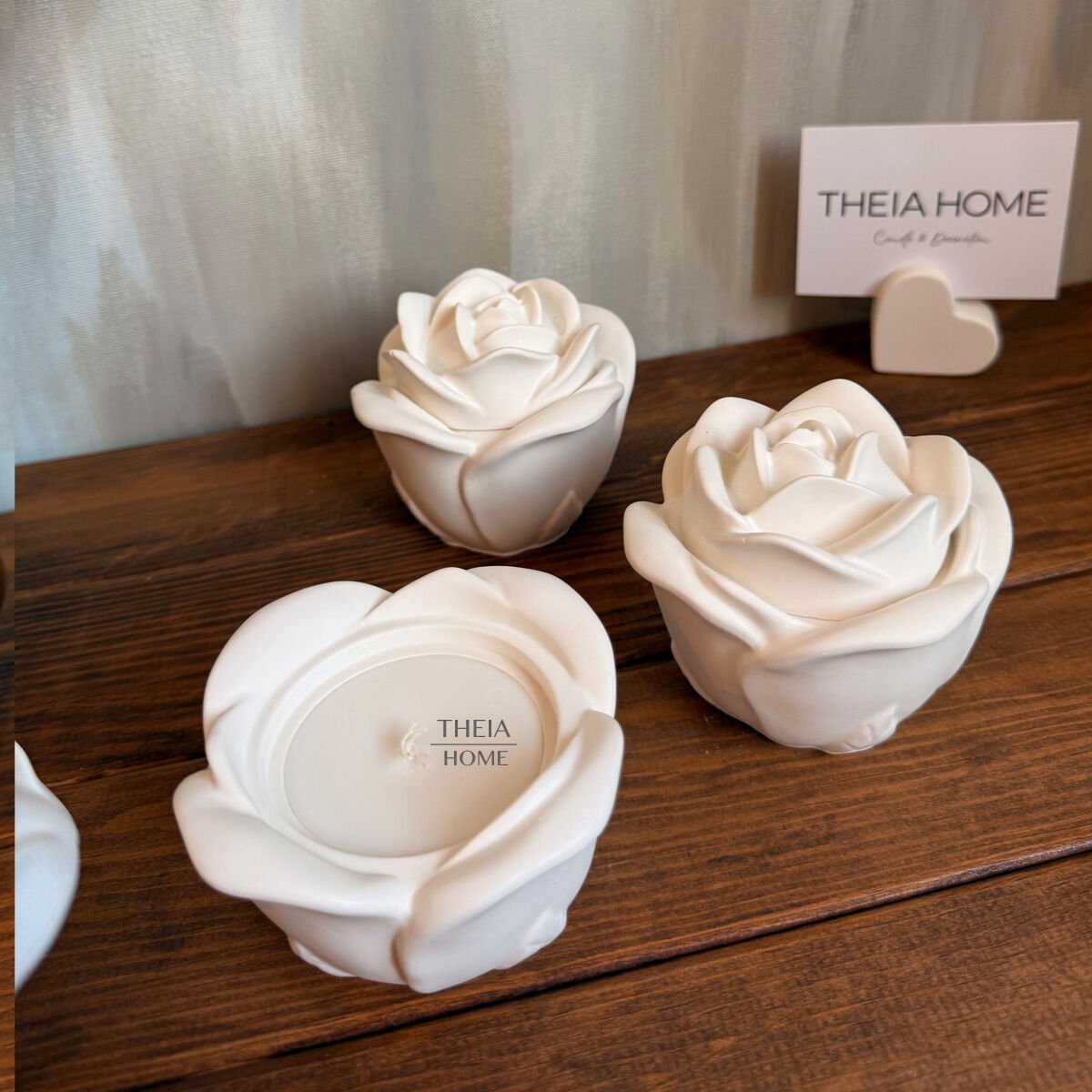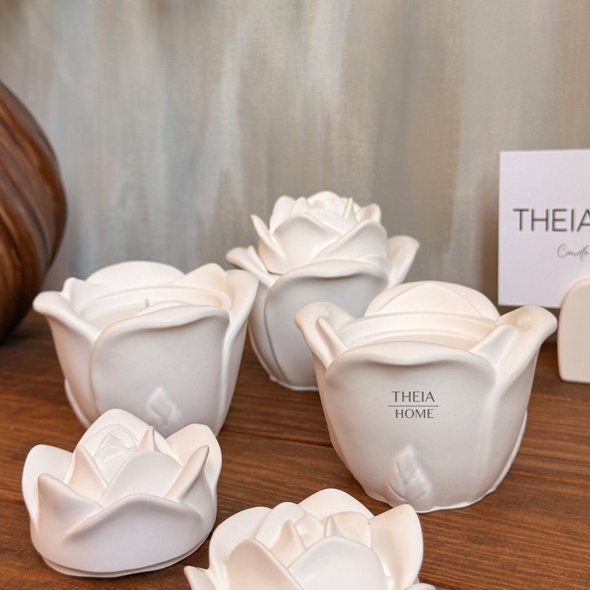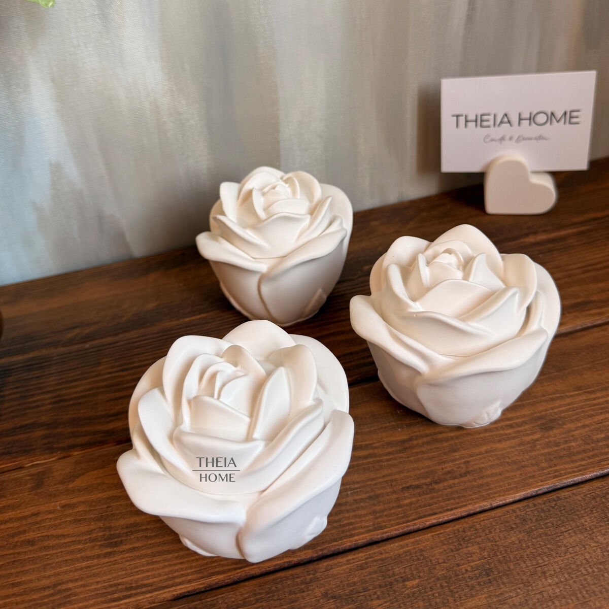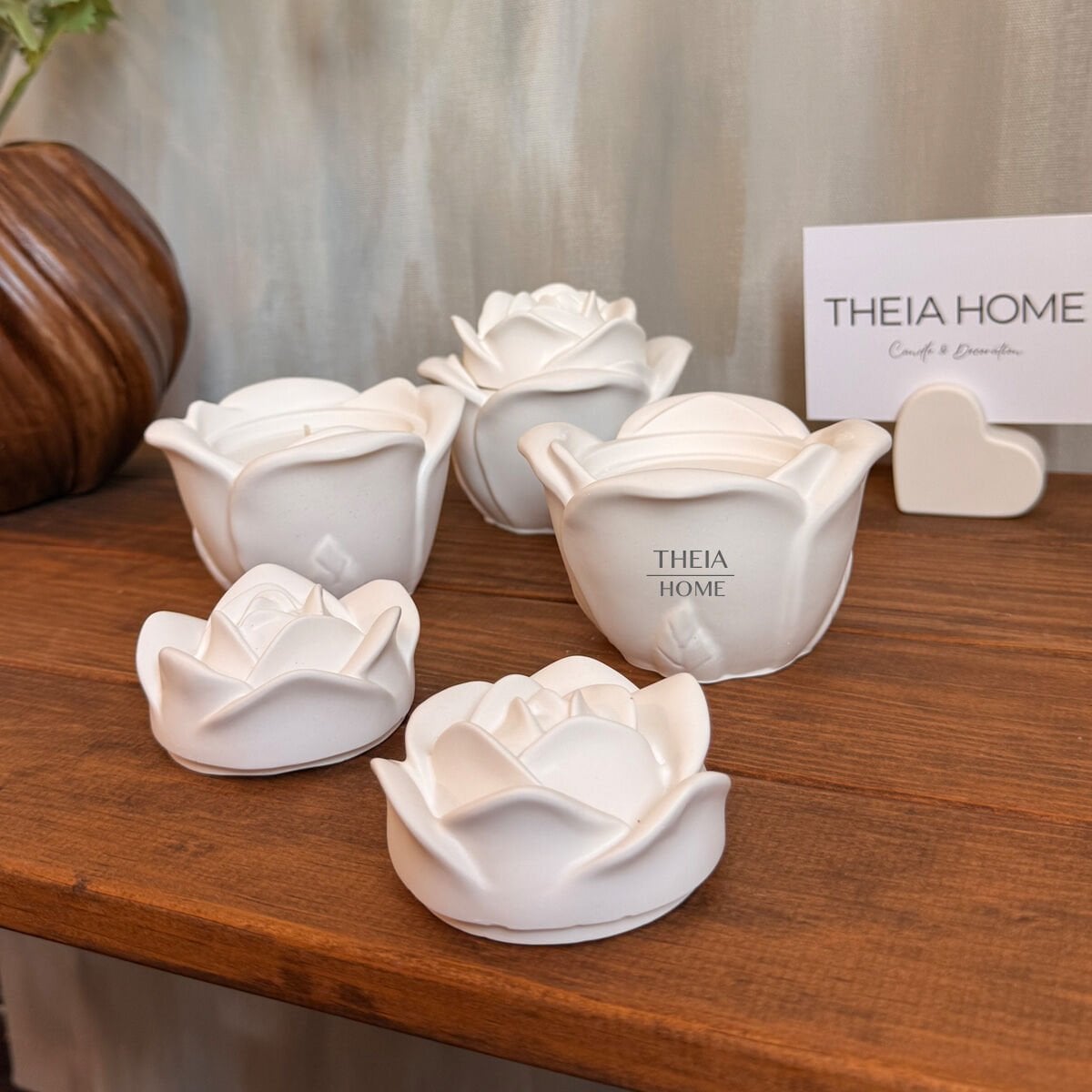 Zarif bir gül formunda tasarlanmış bu dekoratif mum, estetik ve duyusal bir deneyimi bir araya getiriyor. El işçiliğiyle üretilmiş olan bu özel ürün, seramik görünümlü dekoratif taş tozundan şekillendirilmiş olup iç kısmında %100 vegan soya wax mum yer alır.