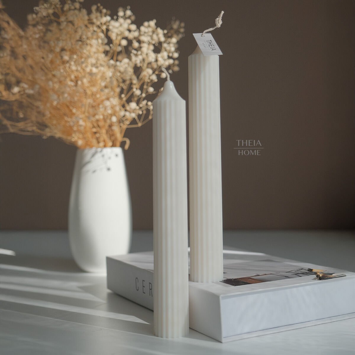 THEIA HOME’un bu kalın sütun mumları, hem evinizde görkemli bir ambiyans oluşturmak hem de sevdiklerinize anlamlı ve zarif bir hediye sunmak için mükemmel bir seçim.