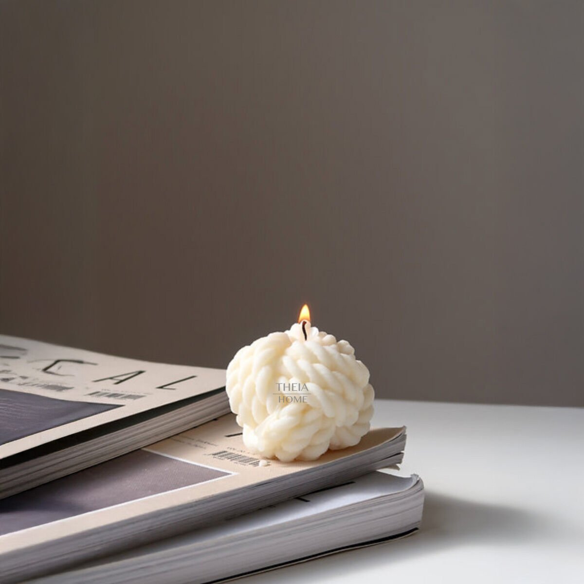 THEIA HOME Örgü Model Soya Mum, minimalist ortamlar için tasarım ve duyusal atmosferi bir arada sunarken, sevdiklerinize özel bir hediye alternatifi de oluşturur.