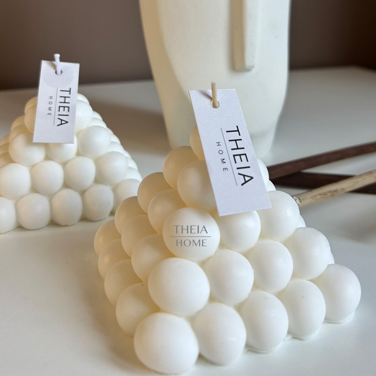 Mimari estetikle öne çıkan THEIA HOME Piramit Bubble Model Soya Mum, dekorasyona modern bir heykelsilik katarken vanilya aromasıyla duyusal bir deneyim sunuyor. Kompakt ama etkileyici formuyla her zemine zarafet kazandırır.