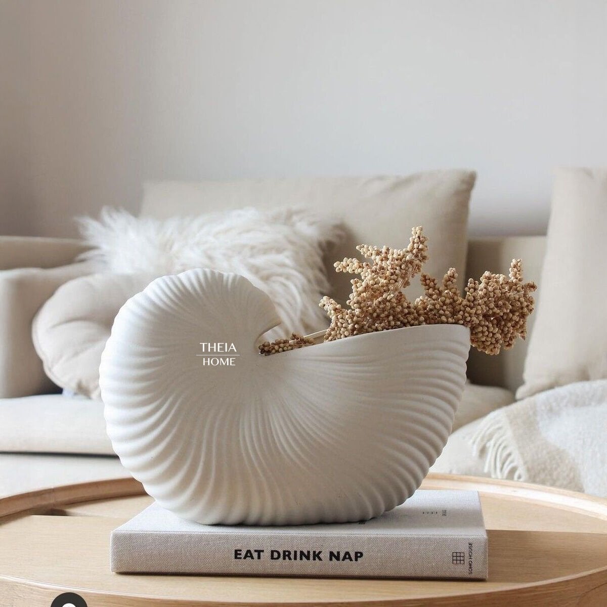 Organik formlardan ilham alan bu seramik vazo, salyangoz kabuğunu andıran zarif kıvrımlarıyla dikkat çeker. Modern ve doğal çizgileri bir araya getiren bu özel tasarım; yaşam alanlarınıza hem sanat eseri görünümünde bir şıklık hem de sofistike bir dokunuş kazandırır.