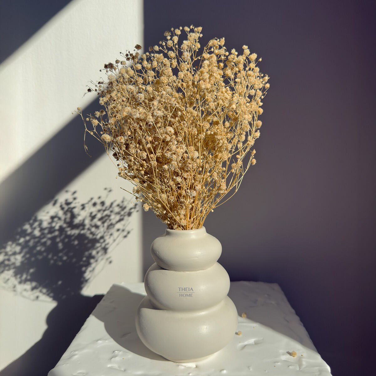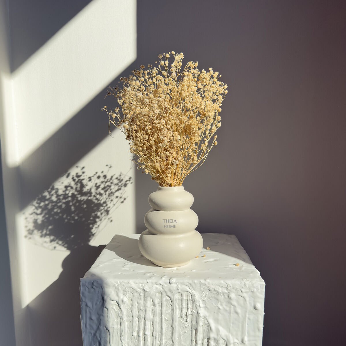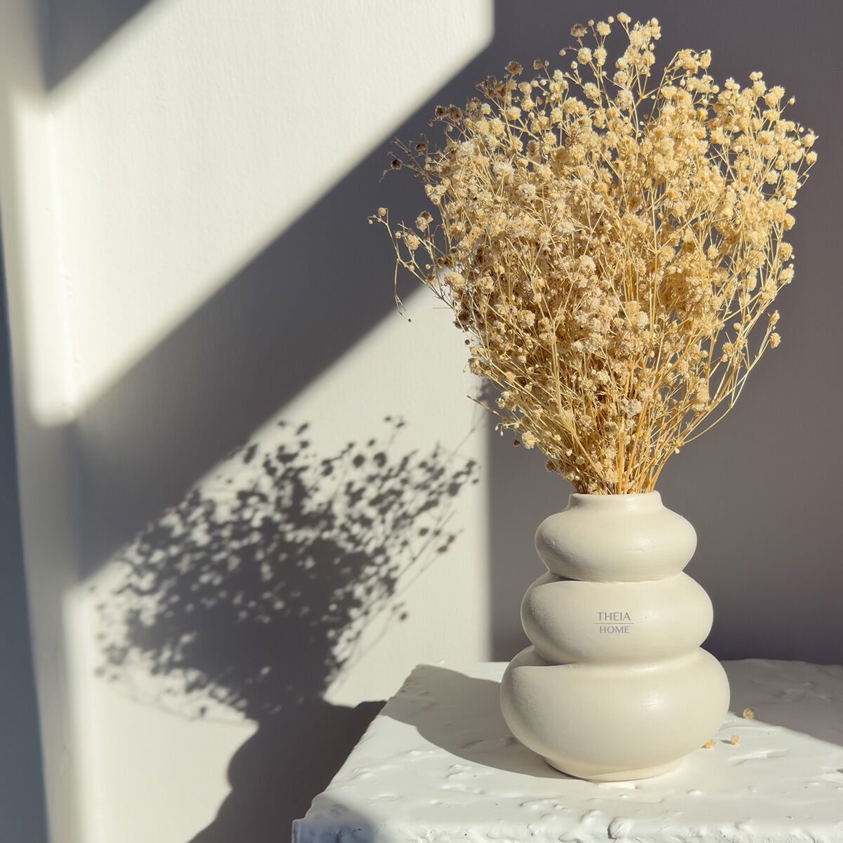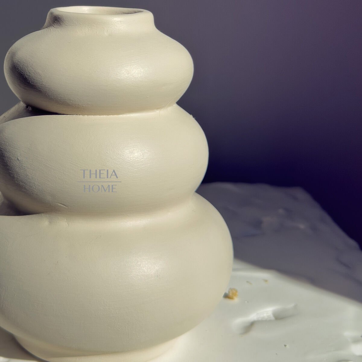 THEIA HOME Seramik Üç Katmanlı Bej Renk Vazo, evinize sadece bir vazo değil; modern heykel estetiğinde bir sanat objesi kazandırır. Dingin, çağdaş ve göz alıcı bir atmosfer yaratmak için mükemmel bir seçim.
