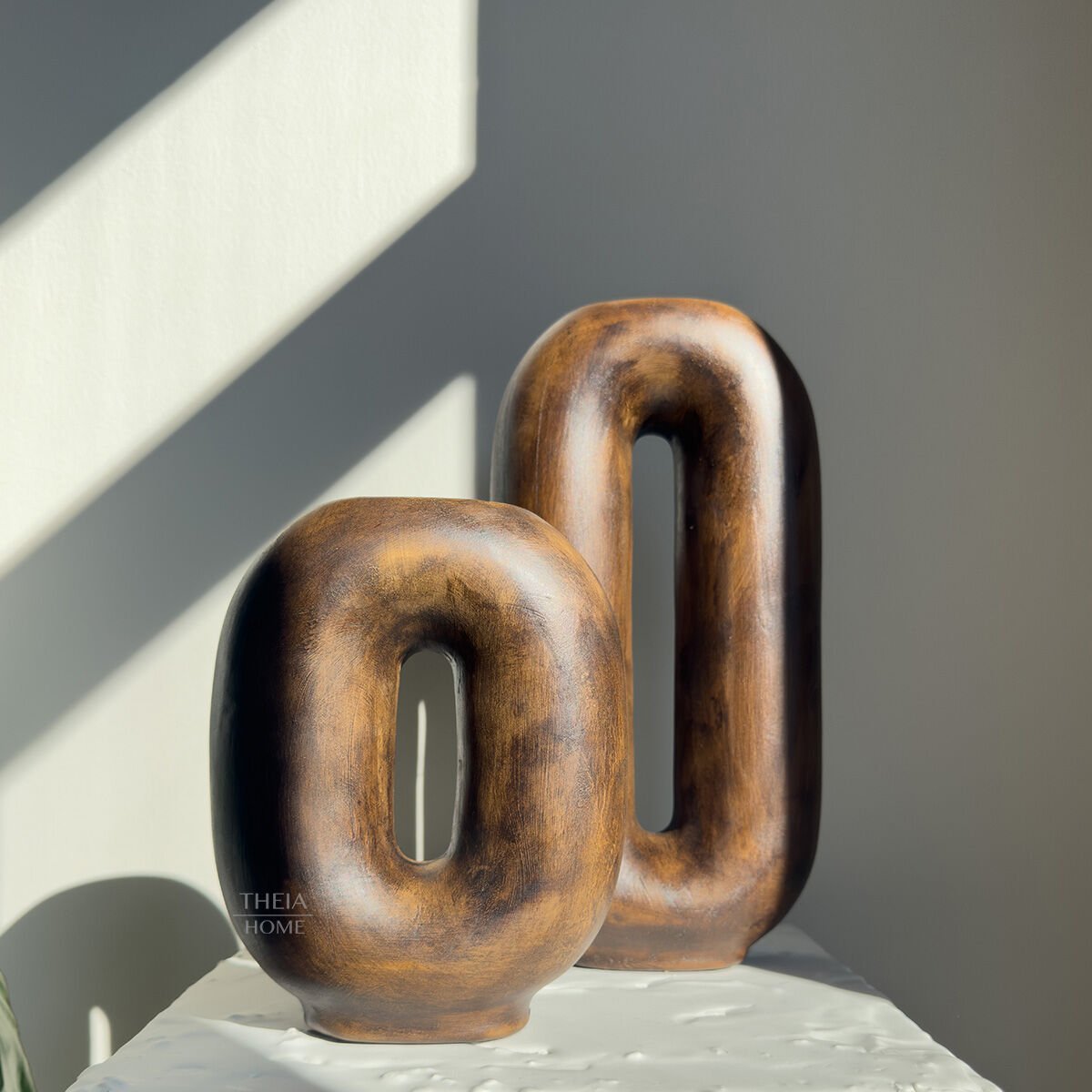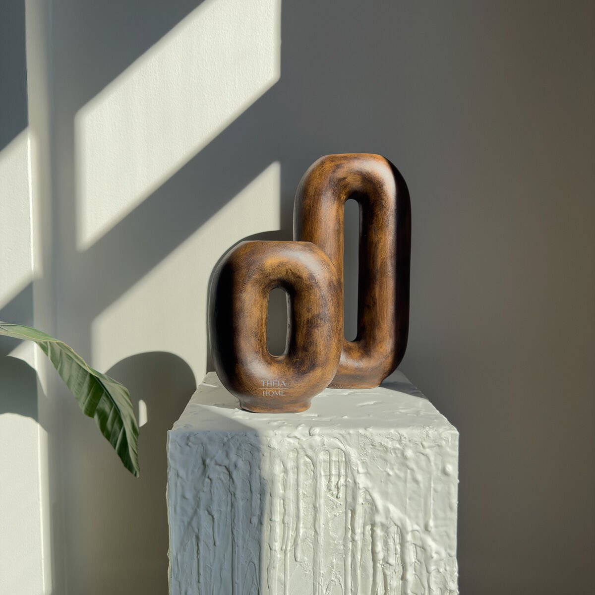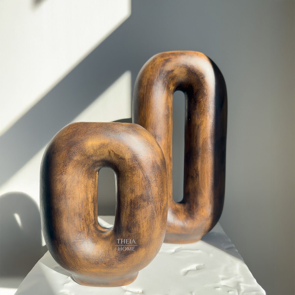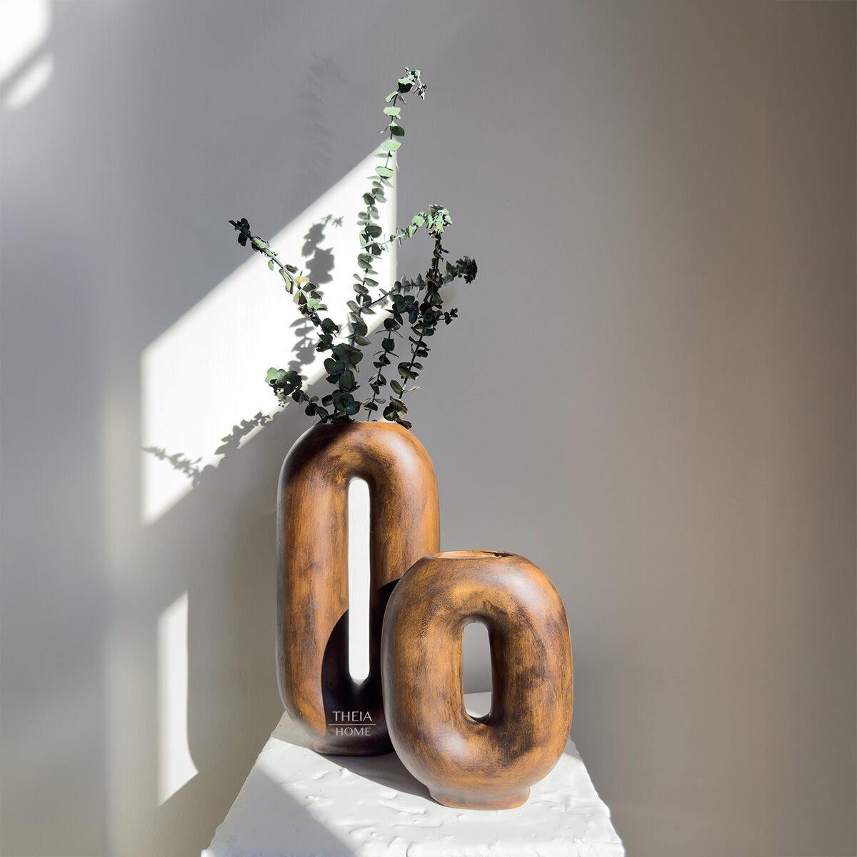 THEIA HOME Seramik Ahşap Görünümlü Boşluklu 2'li Vazo Seti, evinize doğallığı, çağdaş tasarımı ve görsel derinliği bir arada getirir. Mekanlarınızda sıcaklık ve sofistike bir stil yaratın.