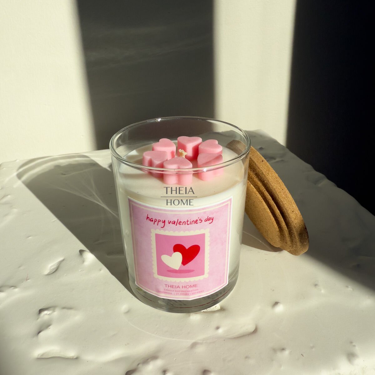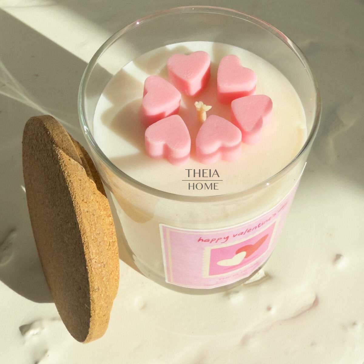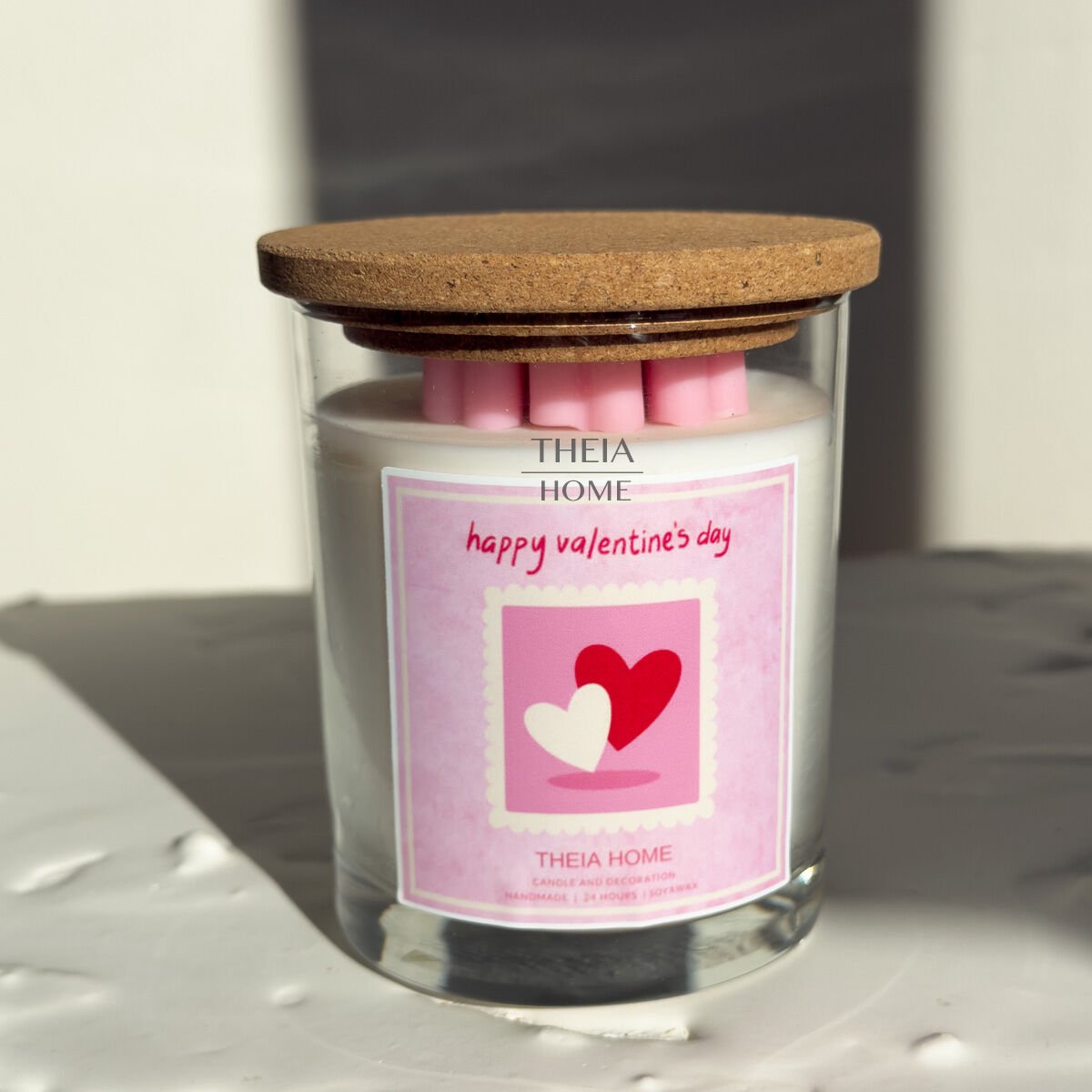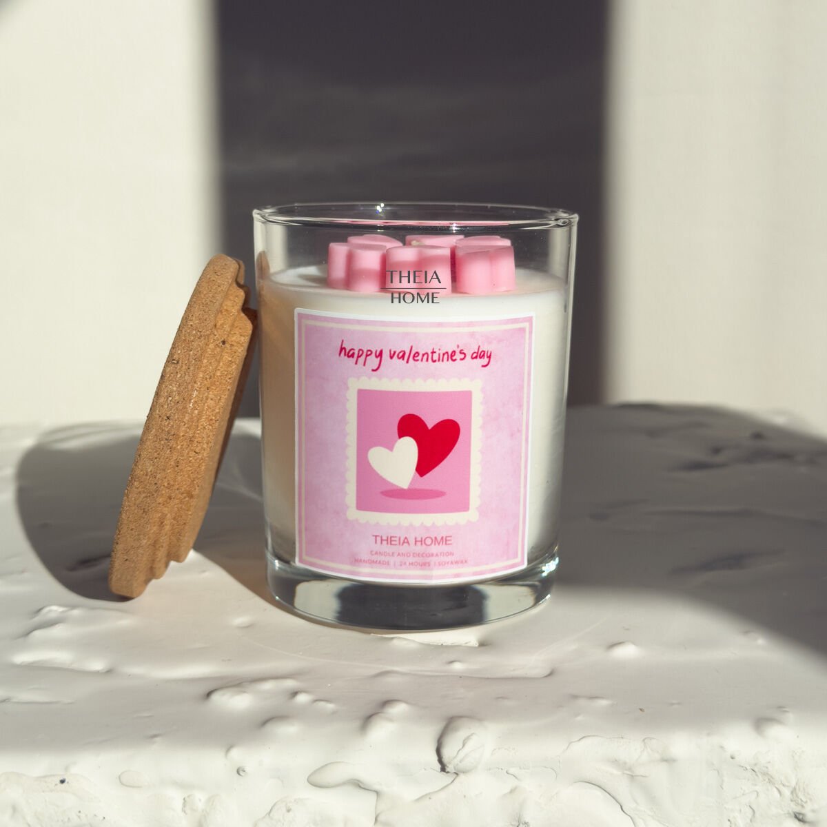 Sevgililer Günü’ne özel olarak tasarlanan “Happy Valentine’s Day” cam kavanoz mum, duygularınızı yansıtmanın zarif ve romantik bir yolunu sunar. Üst yüzeydeki pembe kalp formlu mini mumlar, beyaz soya mum zeminle mükemmel bir kontrast oluşturur. Kapağında yer alan doğal mantar dokusu ise ürüne hem natürel hem de sıcak bir hava katar. El yapımı detayları ve huzur veren vanilya kokusuyla bu mum, yalnızca özel günlerde değil; kendinize ayırdığınız her anı daha anlamlı kılmak için de ideal bir seçimdir.