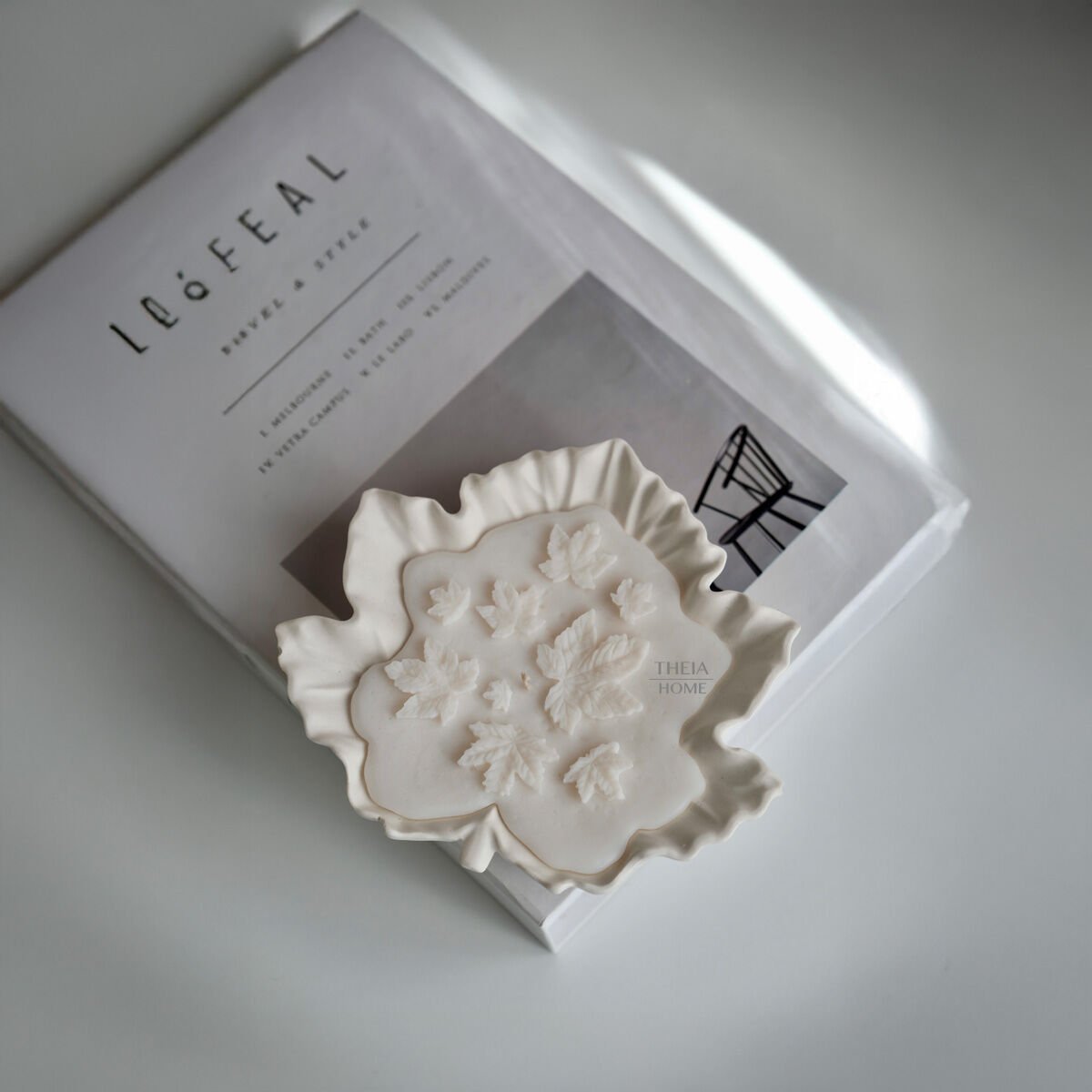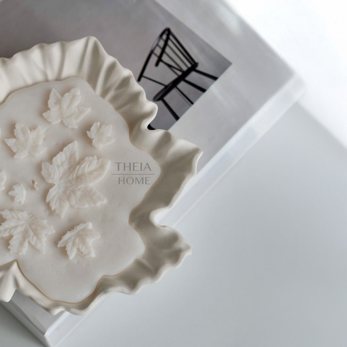 Zarif doğa dokusuyla öne çıkan THEIA HOME Yaprak Model Vegan ve Vanilya Kokulu Soya Mum, evlerinize huzur ve estetik bir atmosfer katıyor. Yaprak formu her ortamda zarif bir odak noktası oluşturur.