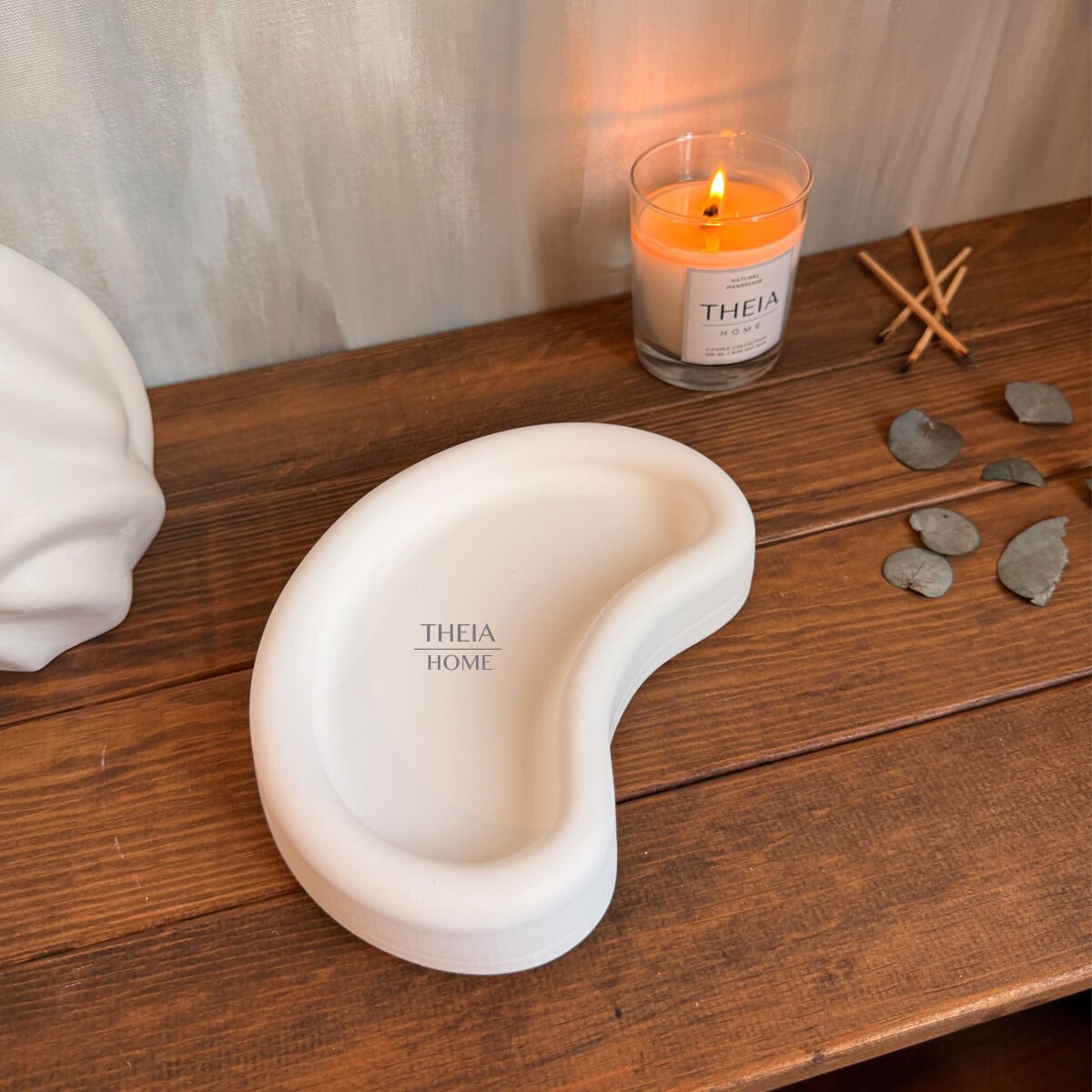 Modern ve minimalist tasarımıyla dikkat çeken bu yarım ay formundaki dekoratif tabak, yaşam alanlarınıza zarif bir dokunuş katıyor. El yapımı olması sayesinde her bir parça benzersizdir ve estetik açıdan özgünlük sunar.