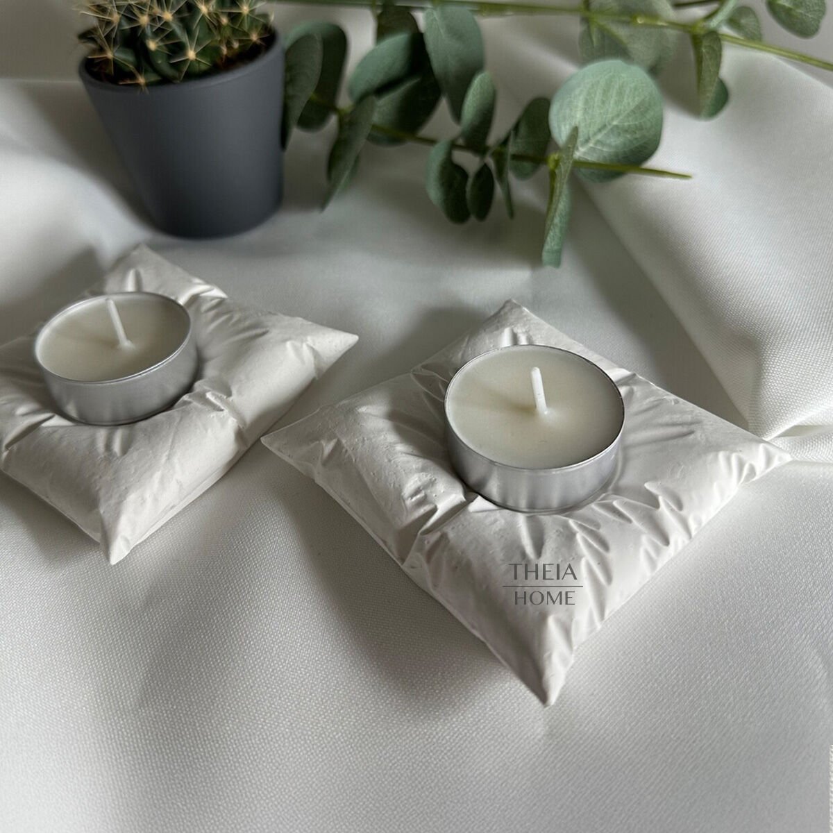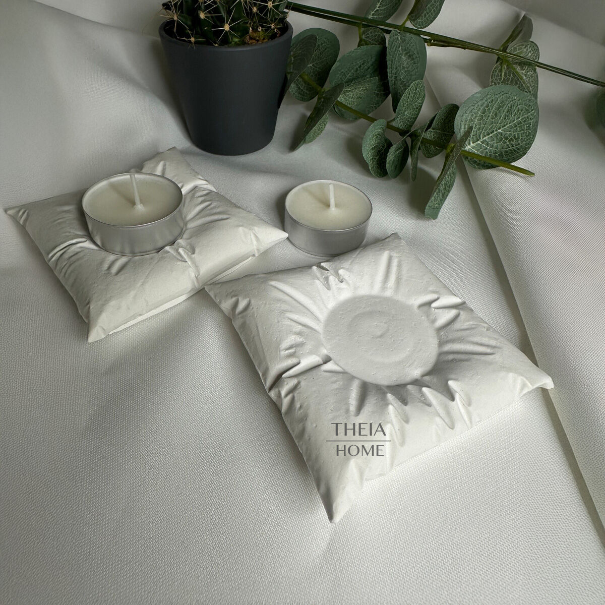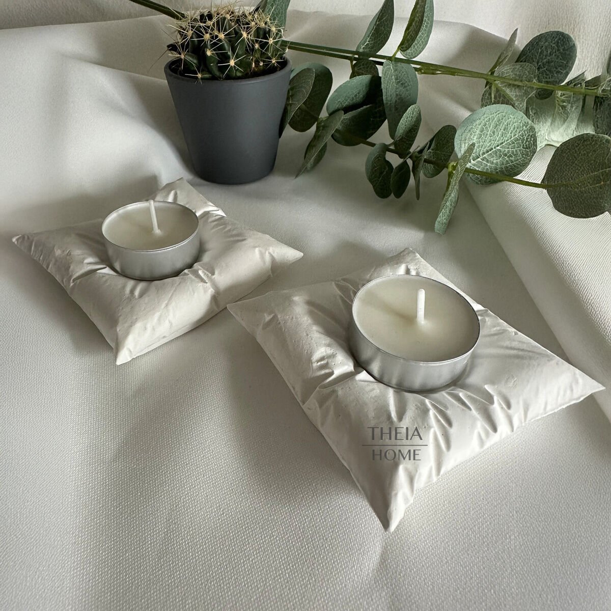 THEIA HOME Yastık Model Tealight Mumluk 2’li Set Dekoratif Obje, evinize dekoratif estetik katarken sevdiklerinize de zarif bir hediye alternatifi sunar.