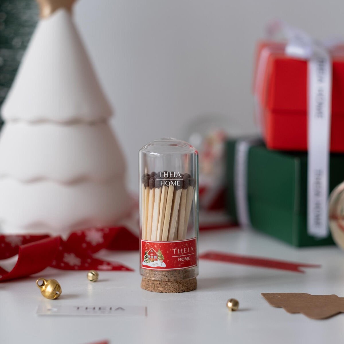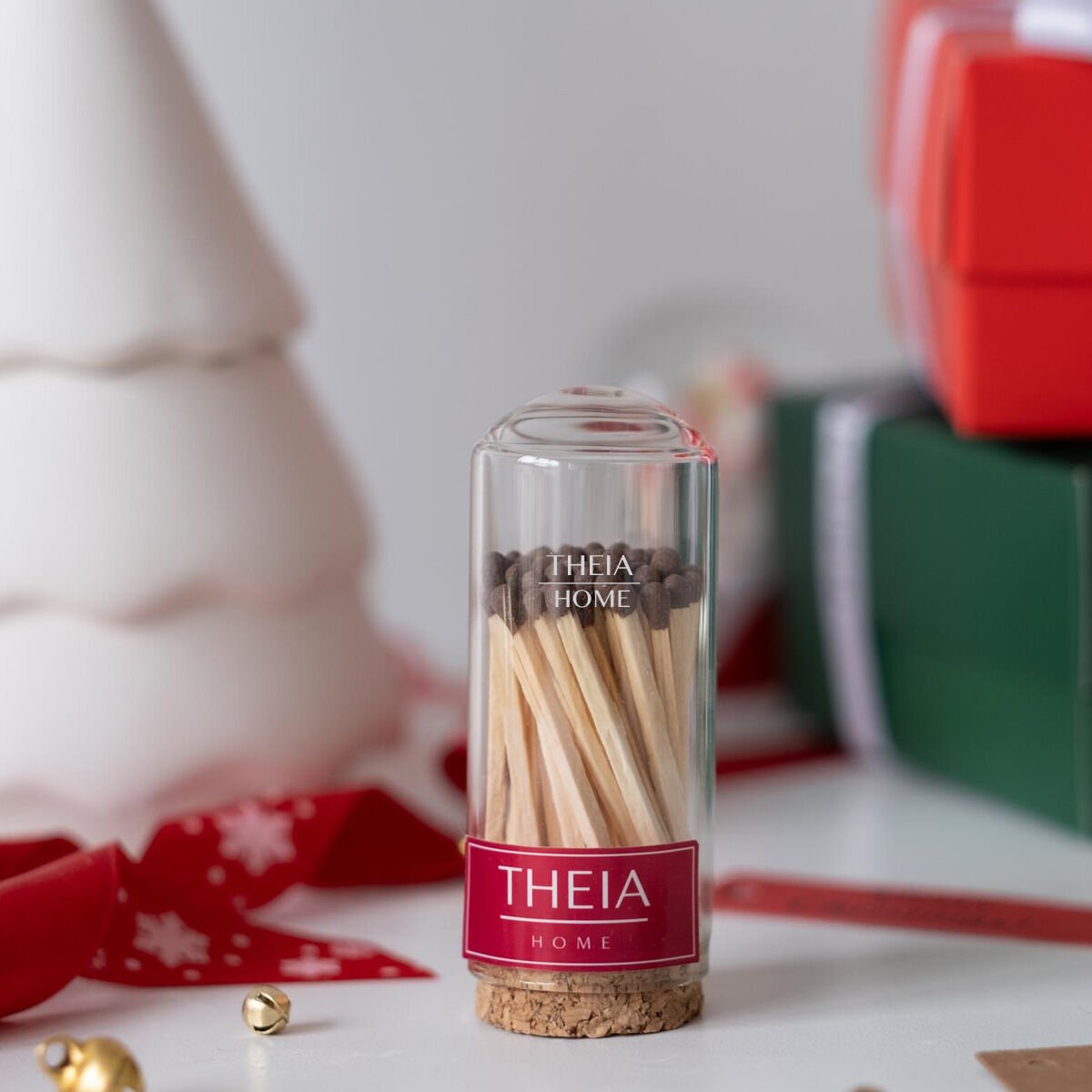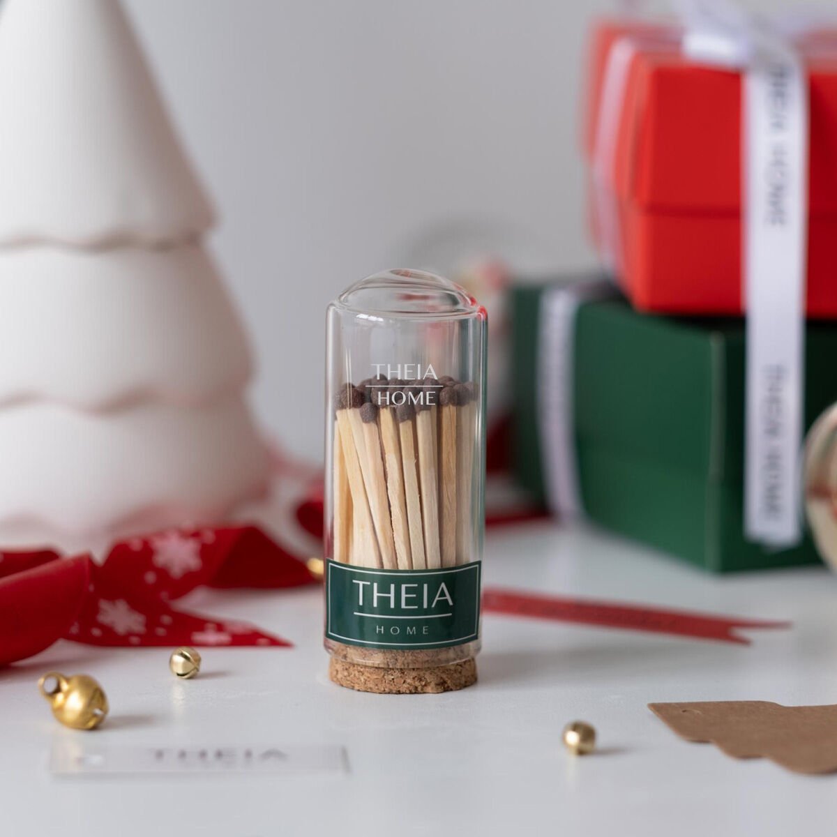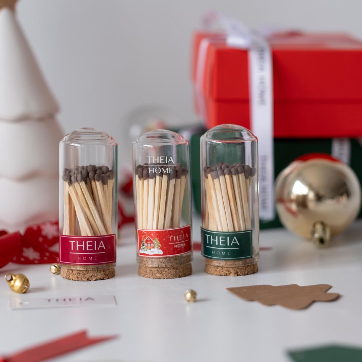 Yeni yıl ruhunu detaylarda yaşamak isteyenler için tasarlandı Cam fanus içindeki özel kibritler hem dekoratif hem de işlevsel bir tamamlayıcıdır Kırmızı yeşil ve yılbaşı temalı üç farklı etiket seçeneğiyle her ortama zarif bir dokunuş katar Theia Home’un el işçiliği ve sade estetiğiyle birleşen bu kibritler mum ve dekoratif setleriniz için ideal bir tamamlayıcıdır