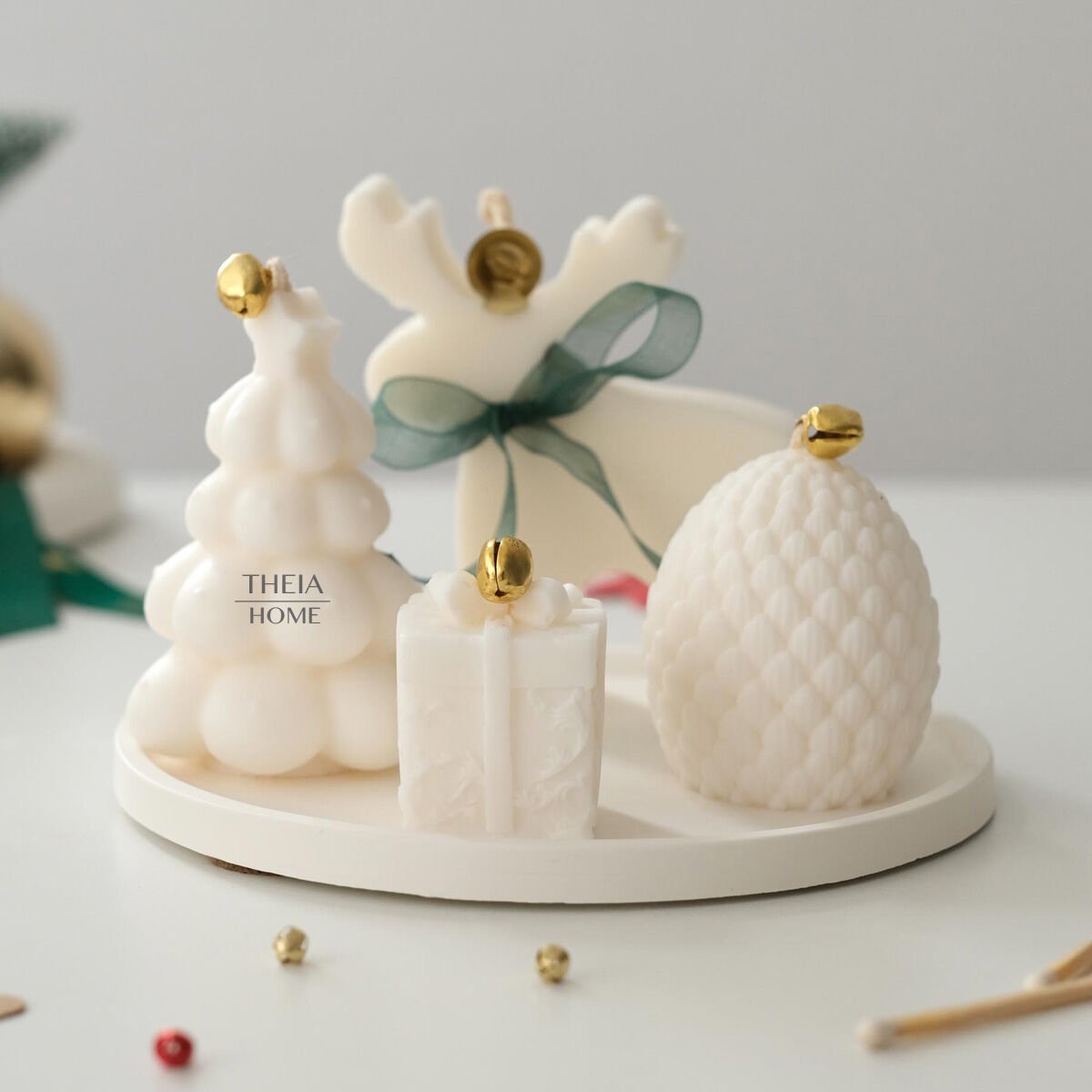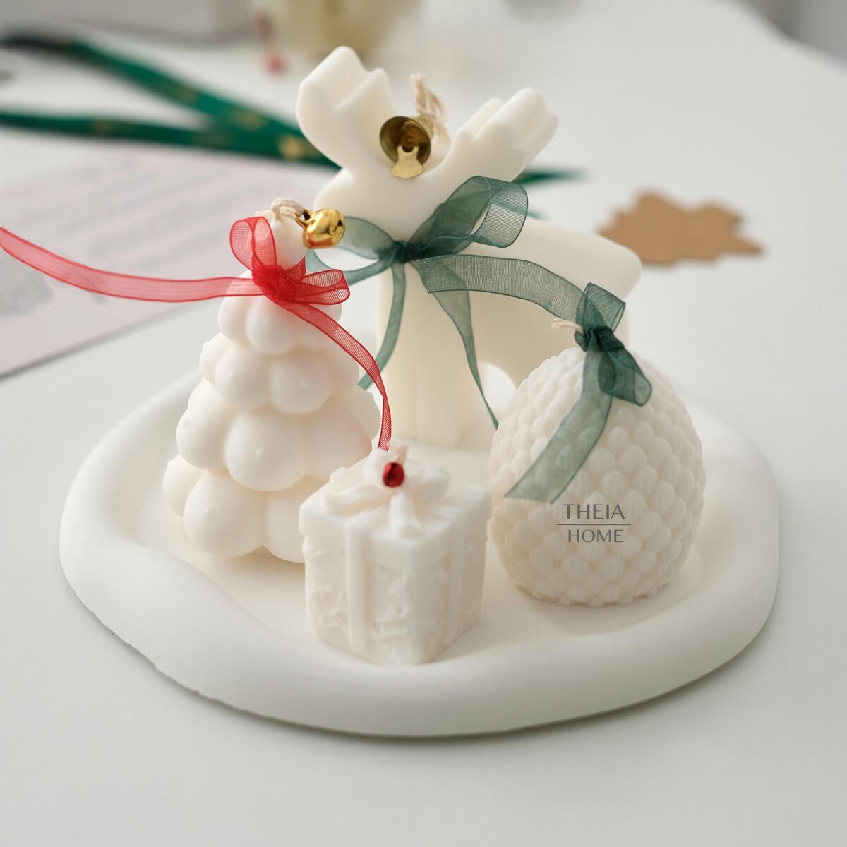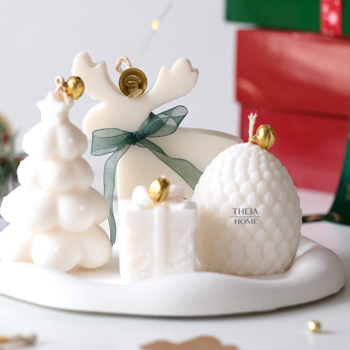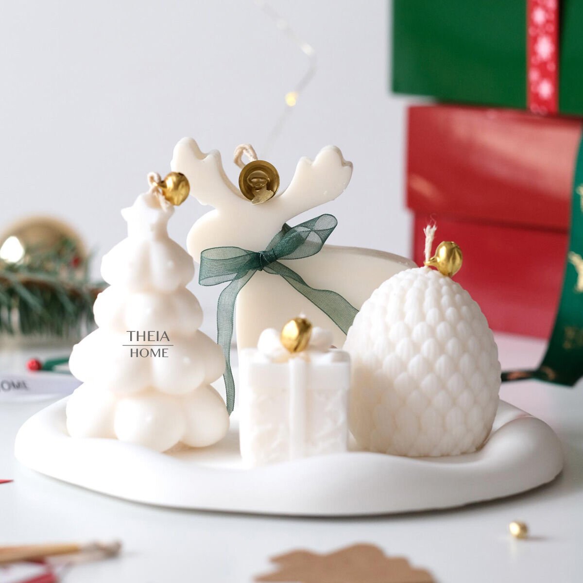 Yılbaşı döneminin sade ama etkileyici ışıltısını yansıtan bu set, Theia Home’un el işçiliğiyle hazırlanmış özel figürlerinden oluşur. Her biri farklı formda tasarlanan mumlar, yumuşak beyaz tonlarıyla sıcak bir atmosfer yaratır. Geyik, çam ağacı, hediye paketi ve kozalak figürleri, yeni yıl ruhunu zarafetle evinize taşır.