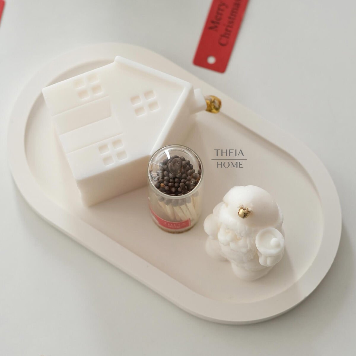 Her biri özenle elde dökülmüş bu parçalar, yılbaşı döneminde ev dekorasyonunuza huzurlu bir dokunuş katarken; sevdiklerinize verebileceğiniz zarif bir hediye seçeneği oluşturur. Oval formdaki taş tabak ise seti tamamlayan şık bir temel sunar.