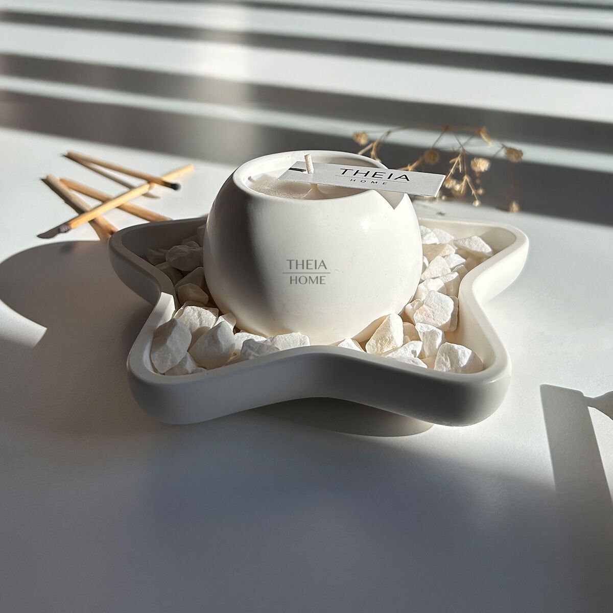 Modern ve fonksiyonel bir ikili sunum seçeneği arayanlar için ideal olan THEIA HOME Yıldız Model Tabak ve Yuvarlak Mum Seti, yaşam alanlarınıza estetik bir dokunuş getiriyor. Beton malzemesiyle sağlamlık sağlarken, yıldız formu ve mum dolu saksı tasarımıyla hem dekoratif hem işlevsel bir obje sunuyor.