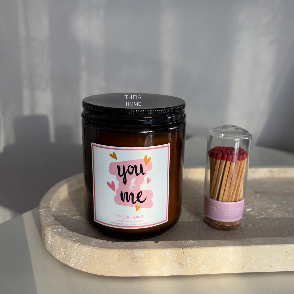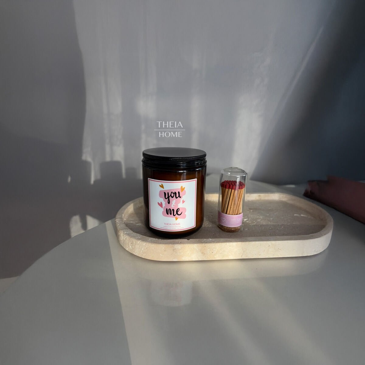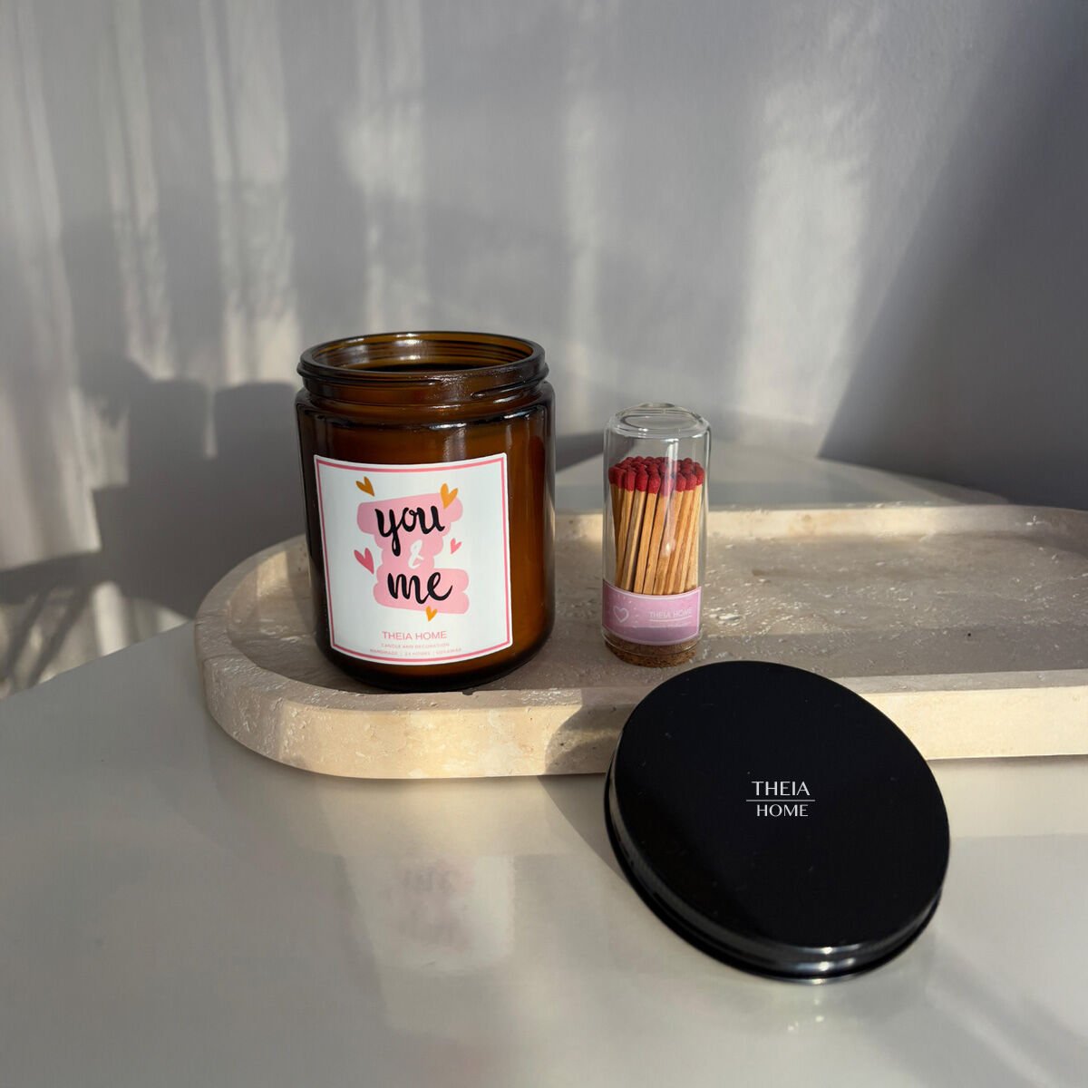THEIA HOME’un özel tasarımı olan You & Me Amber Cam Kavanoz Soya Mum, romantik ve sade detaylarıyla yaşam alanlarına sıcaklık katıyor. Minimal ve dikkat çekici etiketiyle duygusal bir ifade sunarken, amber cam formu dekoratif estetiği tamamlıyor.