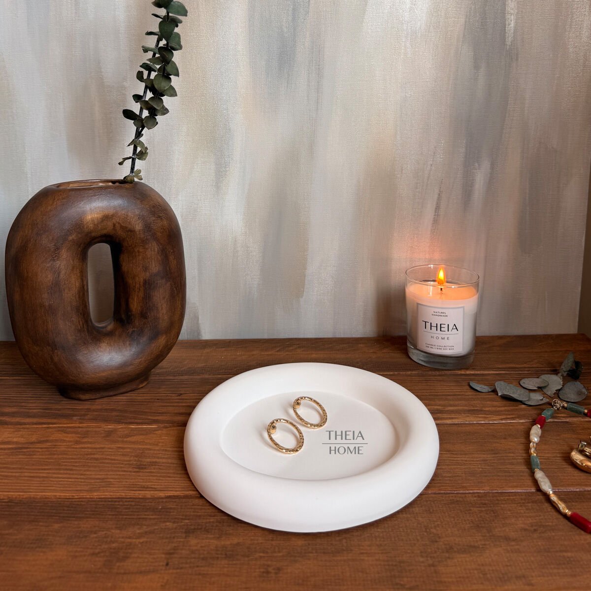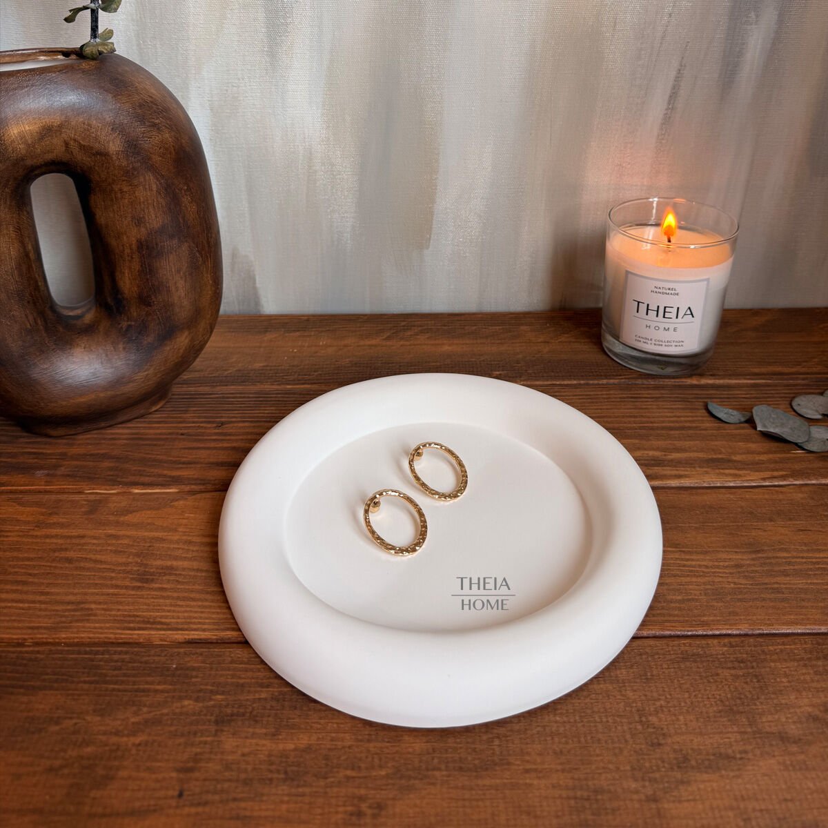 Minimal estetiği ve çok amaçlı kullanımıyla THEIA HOME Yuvarlak Model Dekoratif Tabak, mekânlara hem fonksiyon hem de zarafet katıyor. Mumluk, takı düzenleyici veya kozmetik sunum tabağı olarak hemen kullanıma hazır.